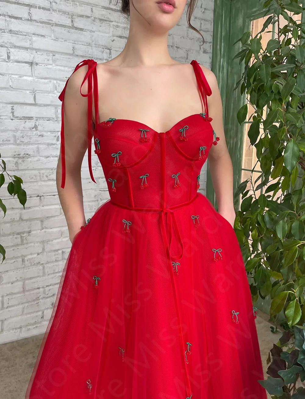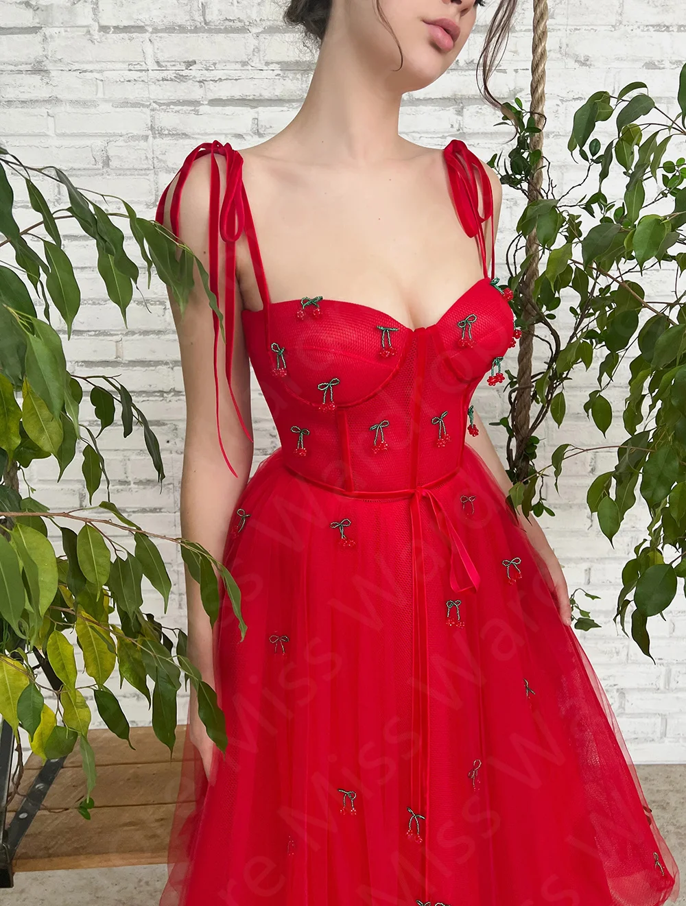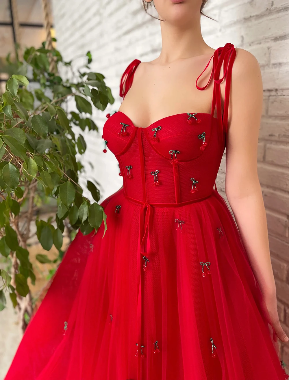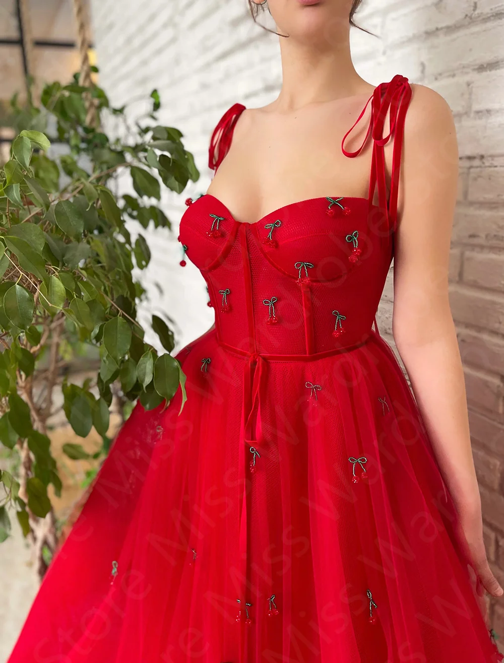 Customized Lovely Red Prom Dresses Short 2025 Sweetheart with Straps Wedding Party Dresses Tea Length Evening Gowns Sleeveless