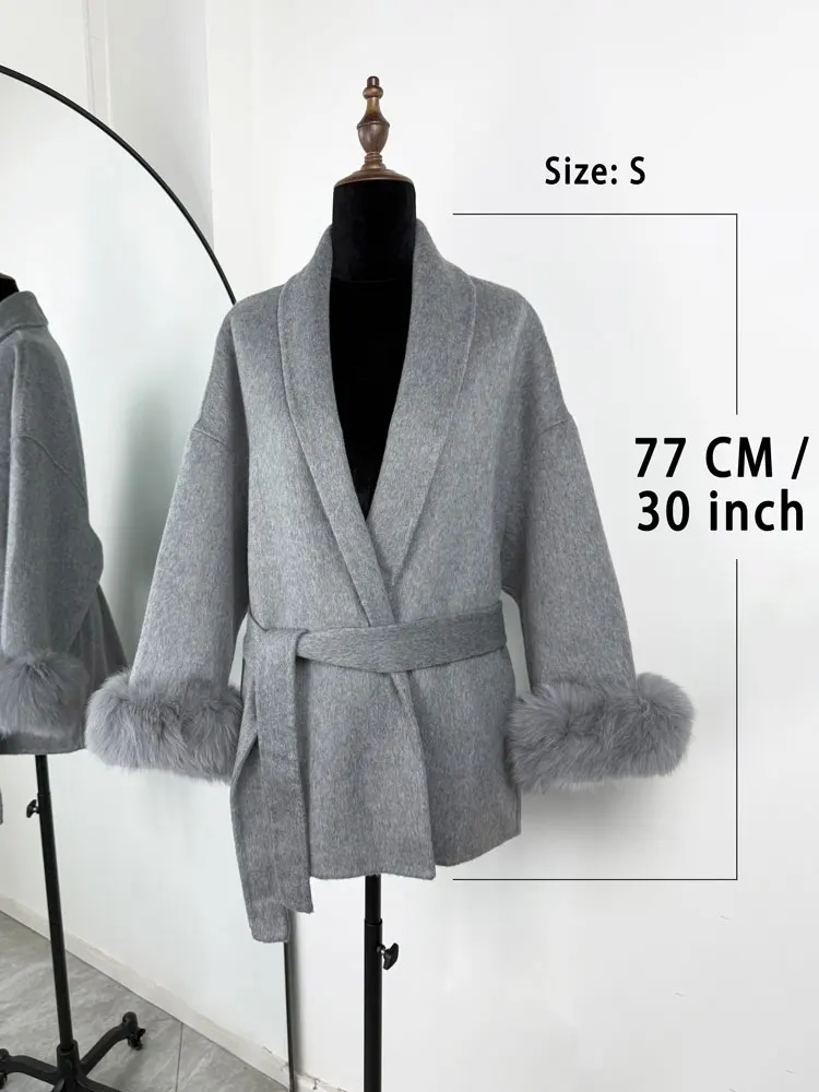 Tossy Fox Fur Wool Overcoat Women's Short Coat Office Lady Elegant Double-sided Woolen Coat 2025 New Cardigan Jackets Loose Wool