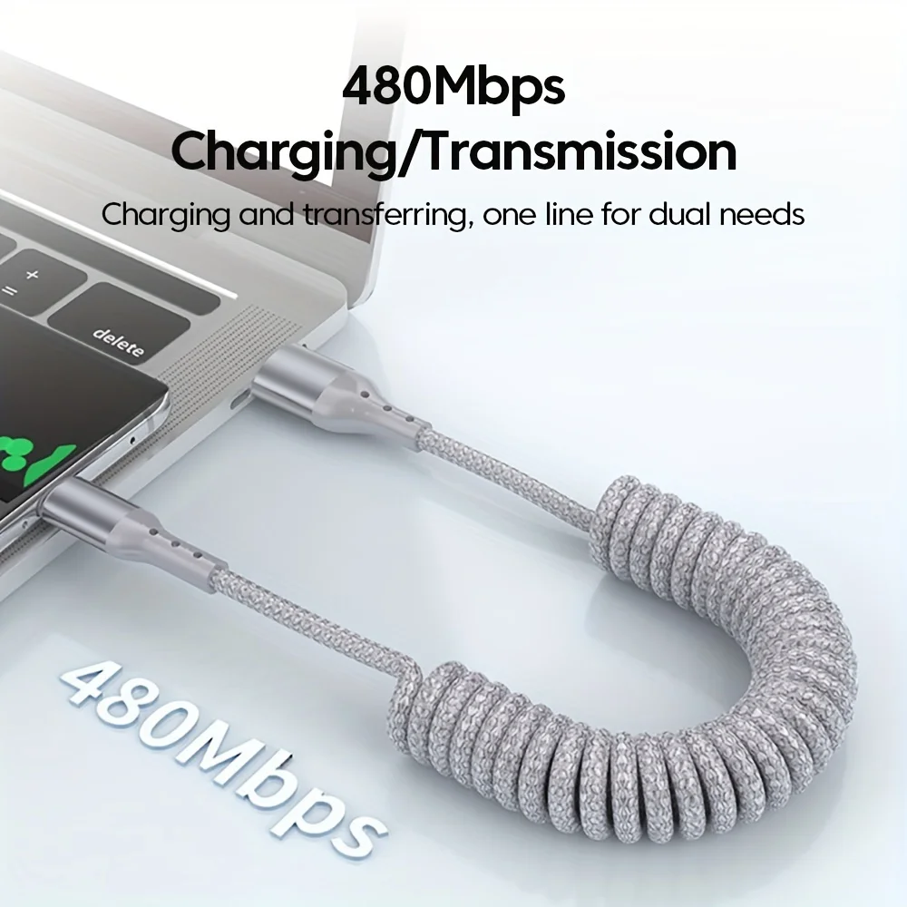 100W USB Type C Spring Car Fast Charging Cable for Samsung Xiaomi Huawei 60W USB C Data Cord for iPhone 15 Huawei USB C Wire