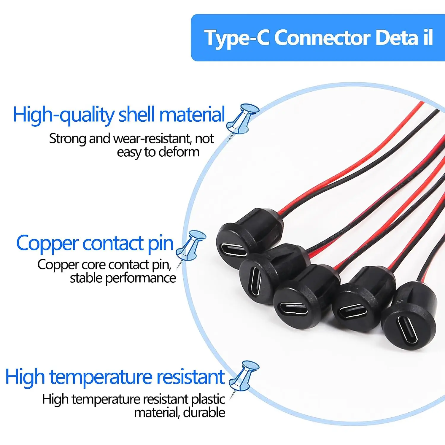 15PCS USB-C Connector Type-C Female Chassis 2 Pin Type-C Female Socket Connector Waterproof Jack Female Charging Port 3A USB-C