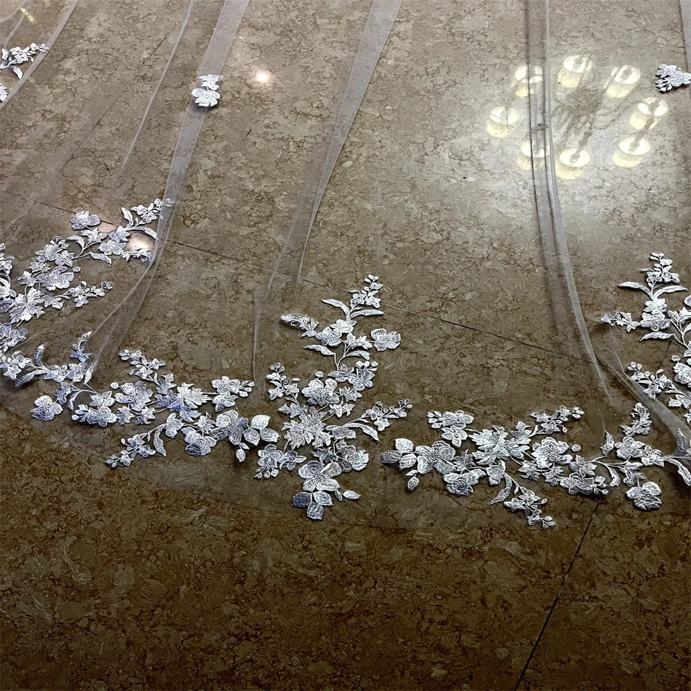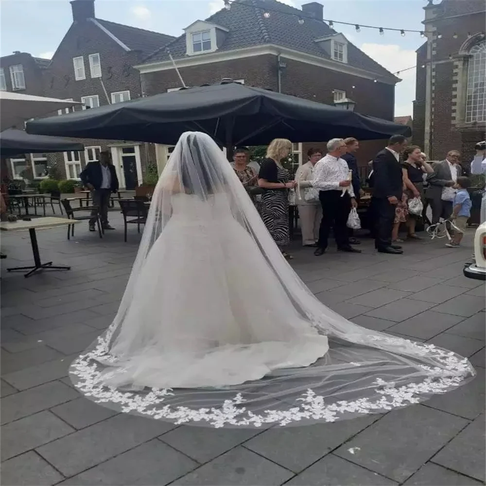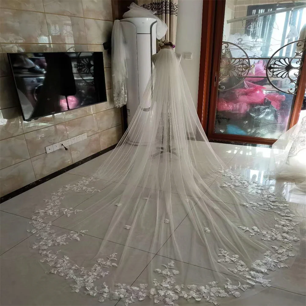 Cathedral Length One Layer Wedding Veil 3m/4m/5m with Comb White Lace Edge Bridal Veil Ivory Appliqued New Real Photo