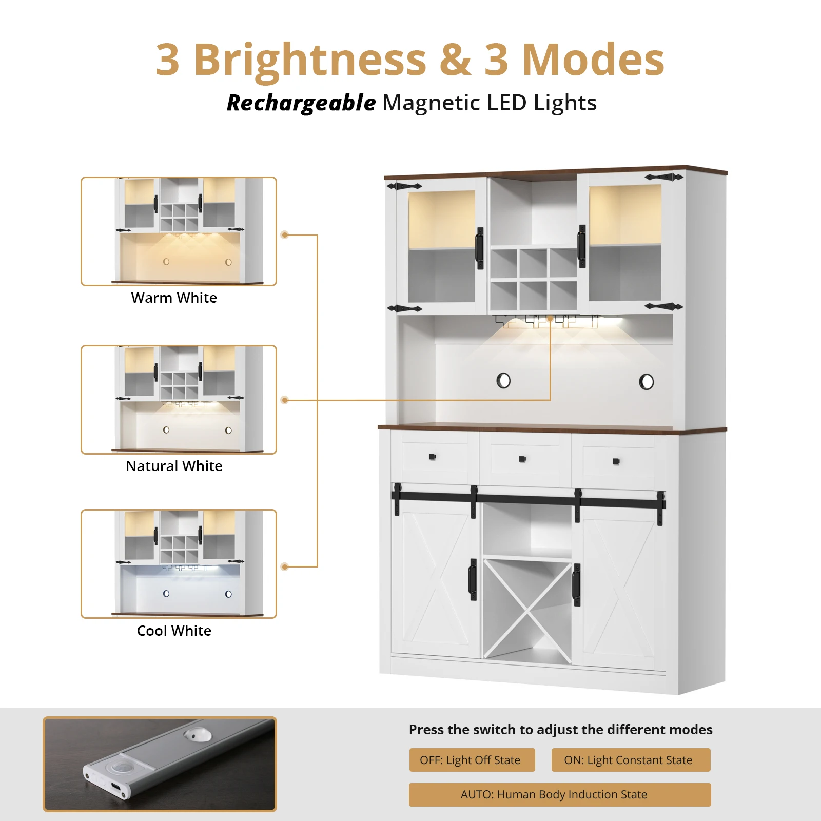 VOWNER Farmhouse Bar Cabinet with Sliding Barn Door, Sideboard Buffet Cabinet with Wine & Glasses Rack, Storage Cabinet for Kitc