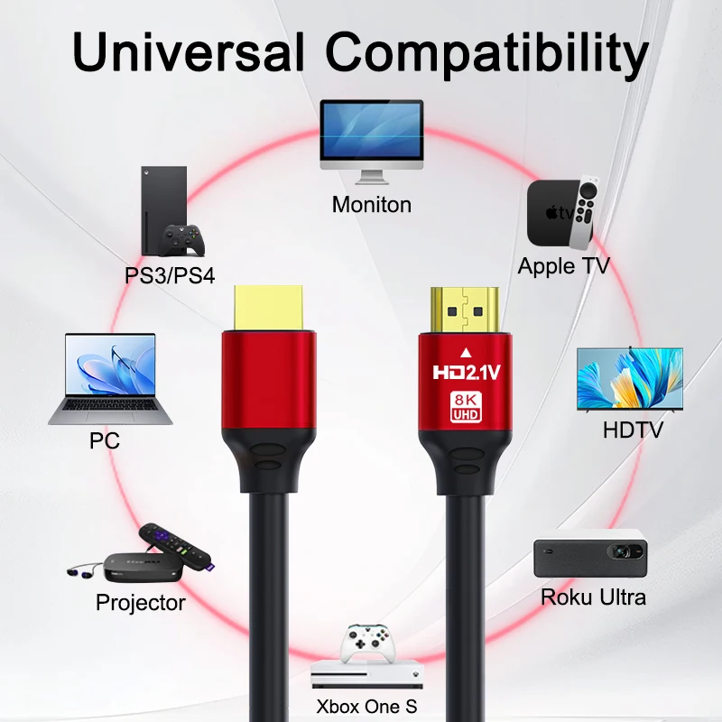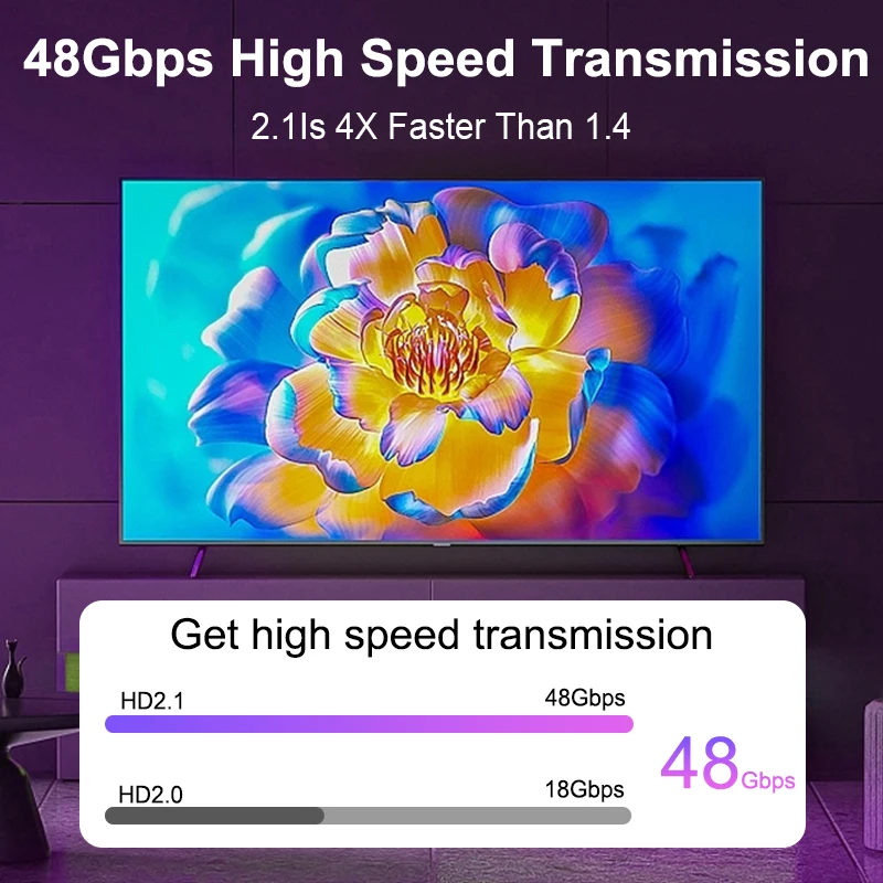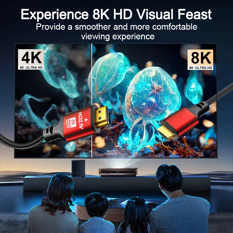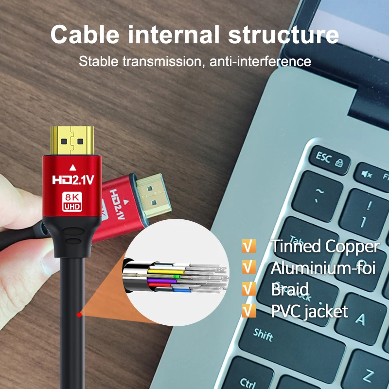 Ultra high definition ultra fast 8K HDTV cable, 4.92/9.84/16.4/ftHDTV 2.1 cable aluminum alloy, HDTV male to male cable, compati