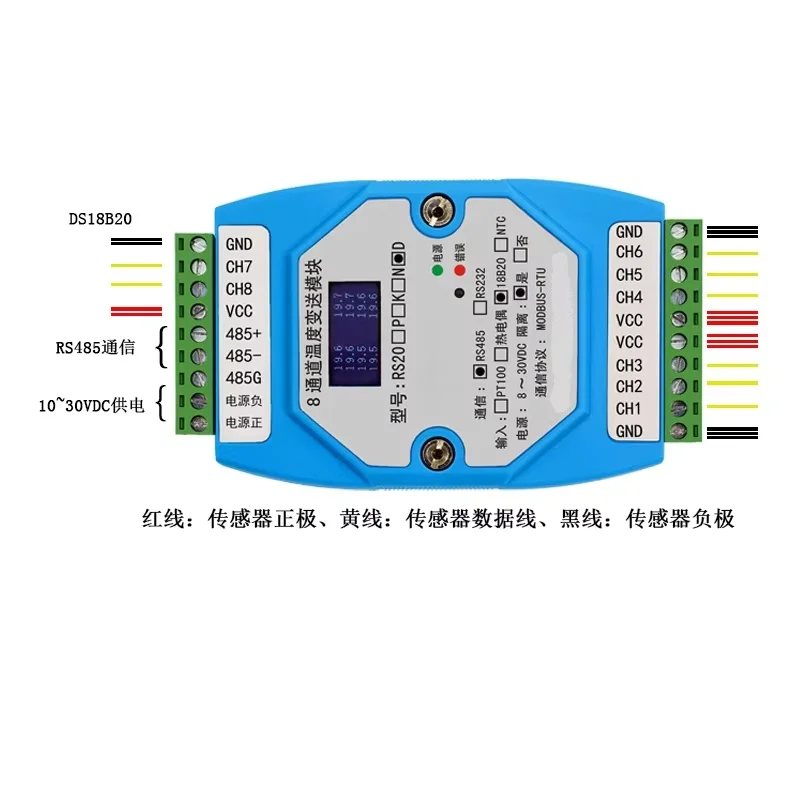RS20D DS18B20 to RS485 temperature acquisition transmitter module standard MODBUS protocol isolated