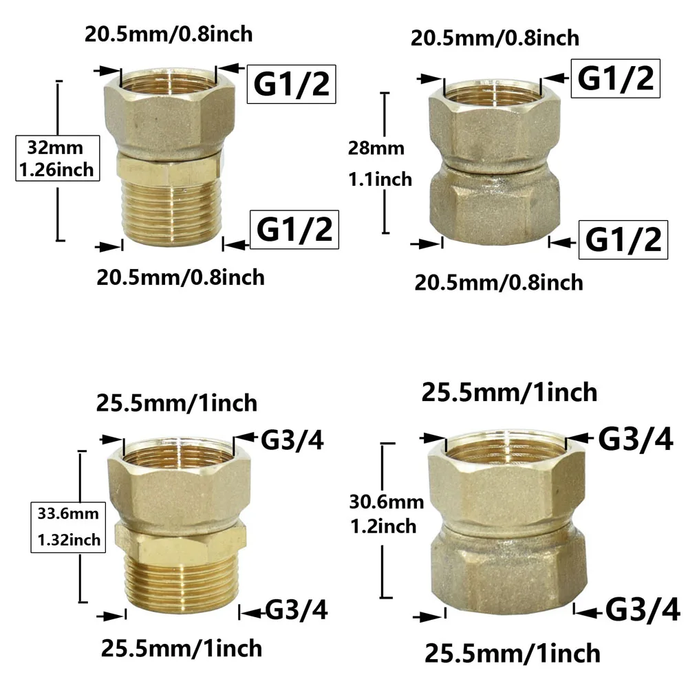 ALI shop - rezultati pretrage ... ... Brass 1/2 3/4 1inch Male Female Thread Connector Rotary installation Metal Thread Water Pipe Connector Copper Repair Fittings ::: 2021 ::: :::