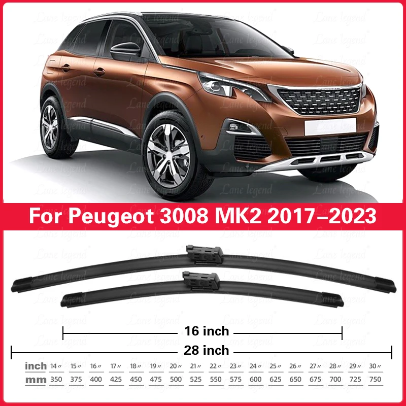 Wiper LHD Front & Rear Wiper Blades Set For Peugeot 3008 Mk2 2017 - 2023 Windshield Windscreen Window Brush 28''+16''+12''