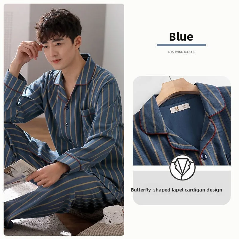 Spring Men's Fall and Winter Long-Sleeved Long Pants Middle-Aged Thin Section of Pajamas Sleepwear Homewear Suit Loungewear