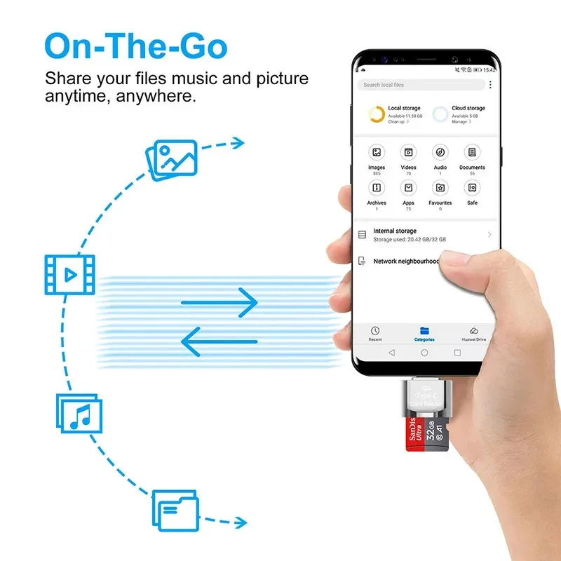 Plug and PlayType-CMiniHigh-speed mobile phone card readerTFCardOTGCardCard reader provides high-speed and stable transmission