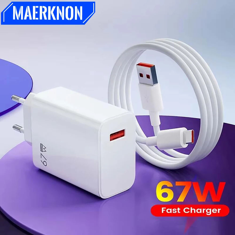 67W USB GaN Charger Fast Charging EU/US/UK Plug Charger Adapter 10A Type C Cable For iPhone Samsung Xiaomi Huawei Quick Charger