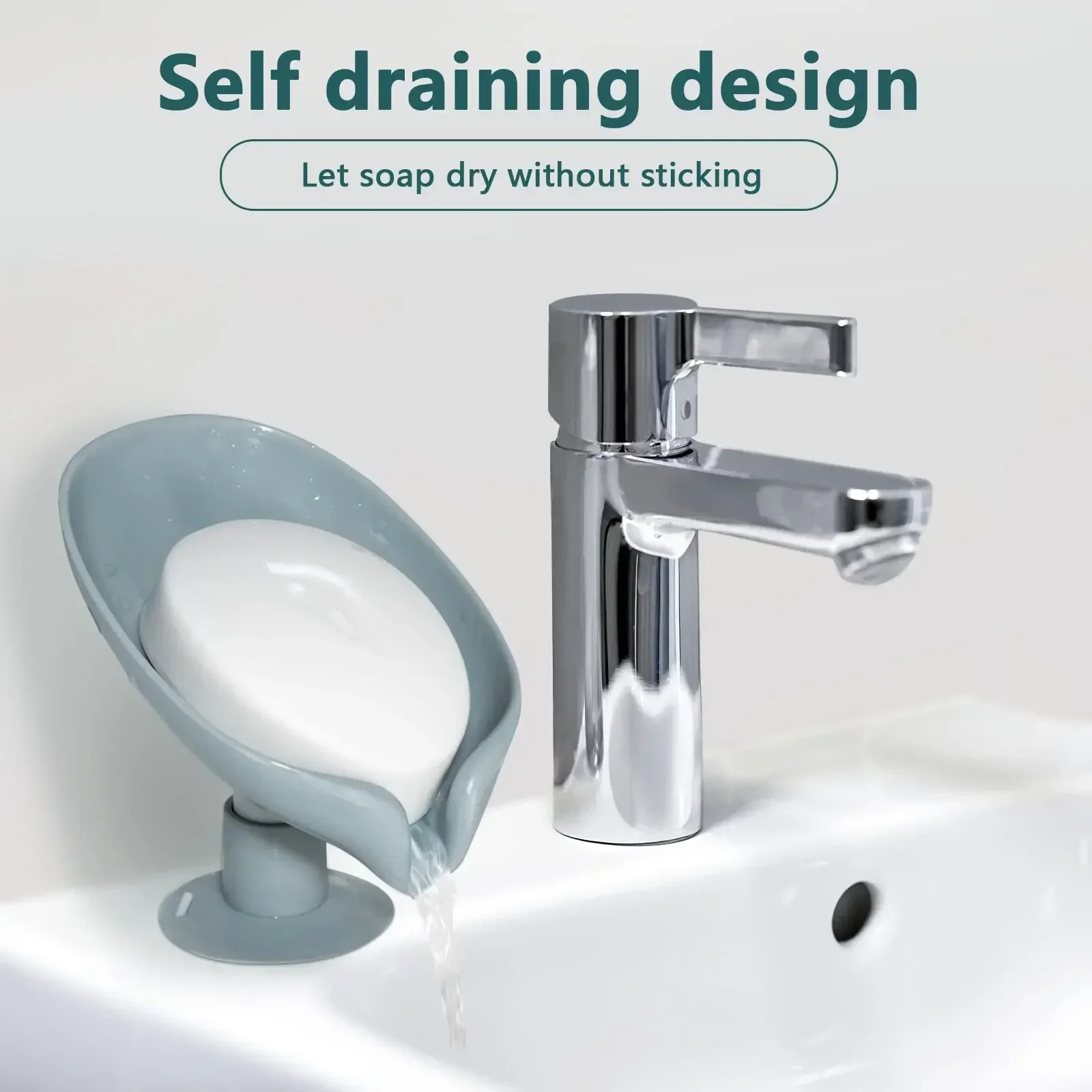 Drain Soap Holder Leaf Shape Soap Box Suction Cup Tray Drying Rack for Shower Sponge Container Kitchen Bathroom Accessories