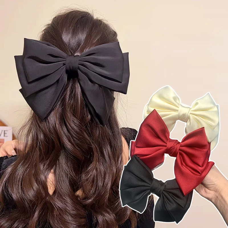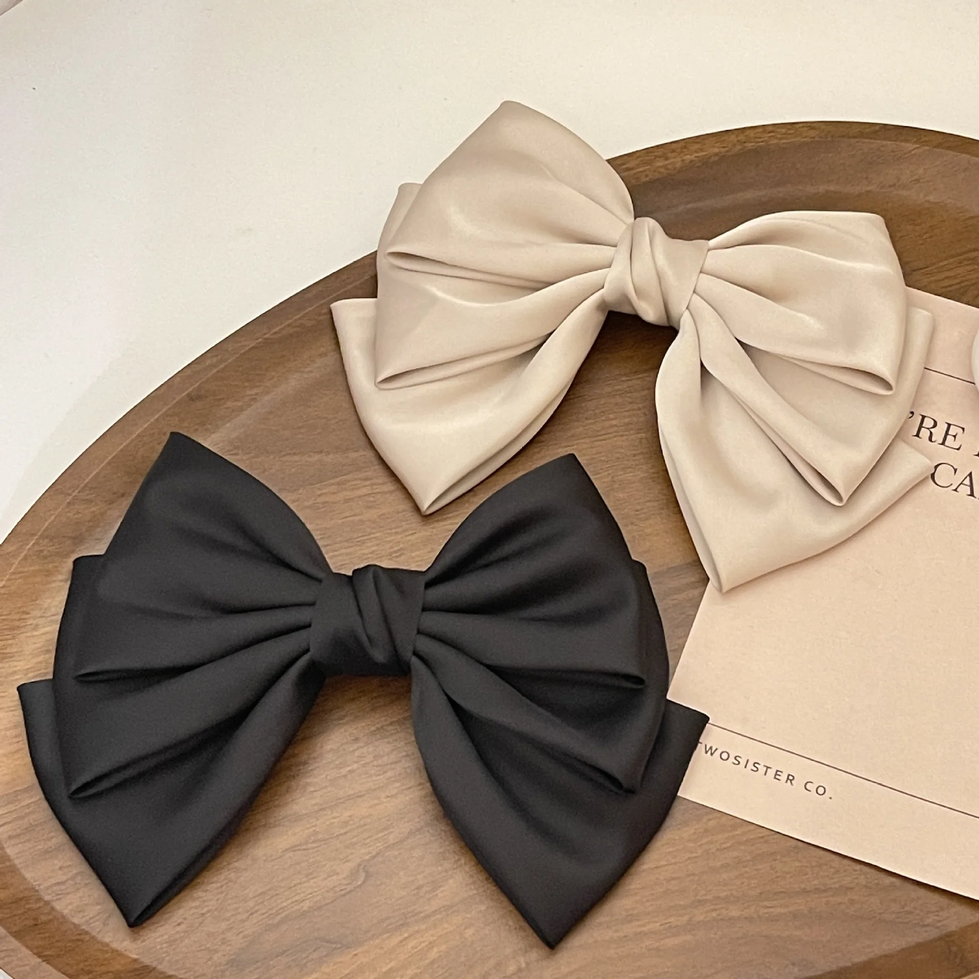 Female Satin Bow Hairpin Ponytail Clip Two-layer Bowknot Ribbon Spring Clip Temperament Accessories Korean Fashion Elegant