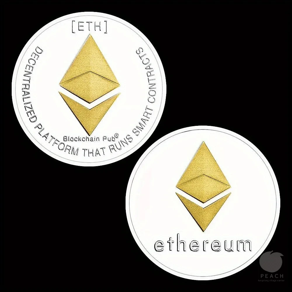 Ethereum Coin Souvenir Commemorative Silvery Plated Collectibles Coin Challenge Coin ETH Physical Cryptocurrency Crypto Coin