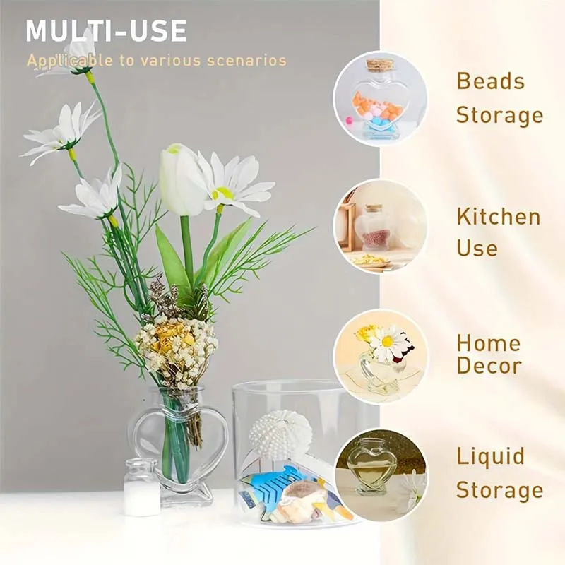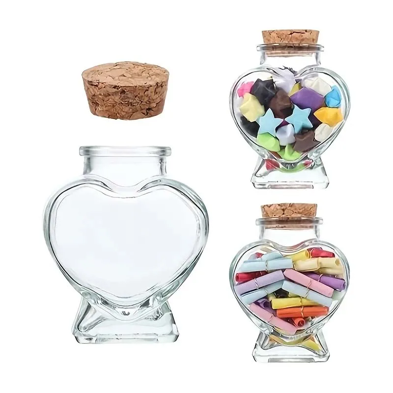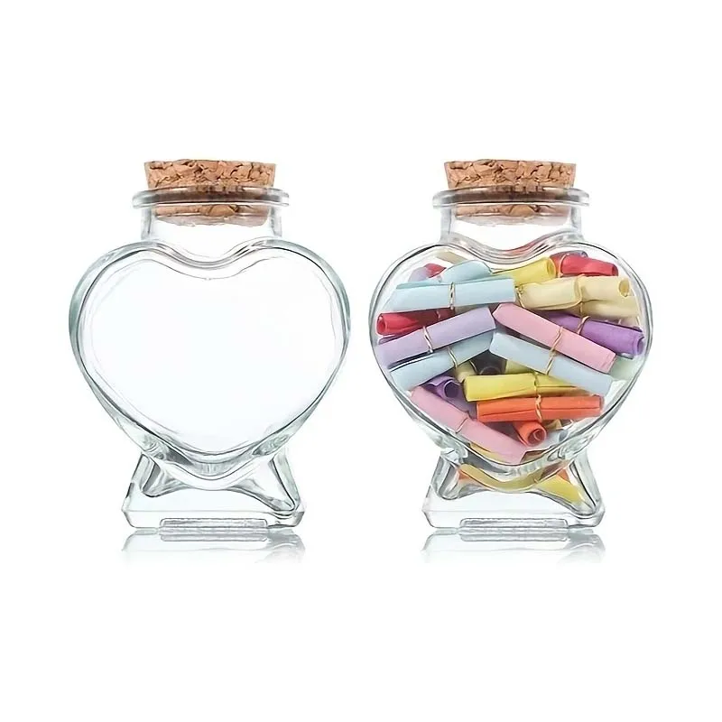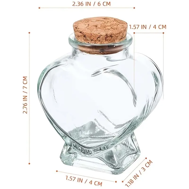 1PC Heart Shaped Glass Bottle Clear Glass Jar with Cork Mini Drifting Bottle for DIY Wishing Drifting Message Bottle Crafts
