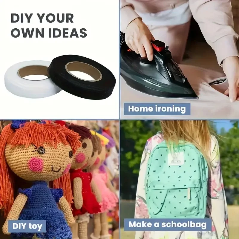 2Roll Black White Double-sided Interlining Adhesive Fabric Clothes Iron On Hem Tape Interlining Web DIY Sewing Patchwork Acces