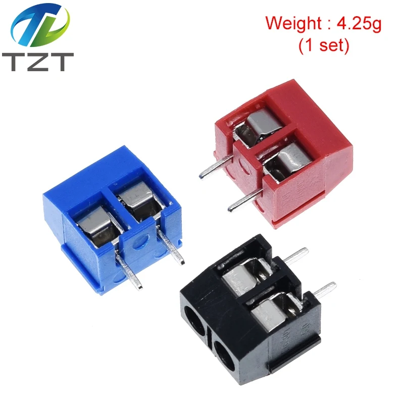 TZT 10/30PCS KF301-2P KF301-5.0-2P KF301 Screw 2Pin 5.0mm straight Pin screw block connector black red And blue