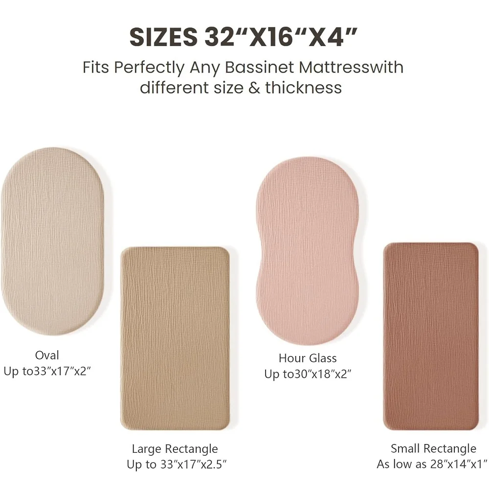 2PCS Baby Bassinet Sheet Muslin Bassinet Sheets Changing Pad Cover 100% Cotton Soft Breathable Fitted Bassinet Mattress Sheets