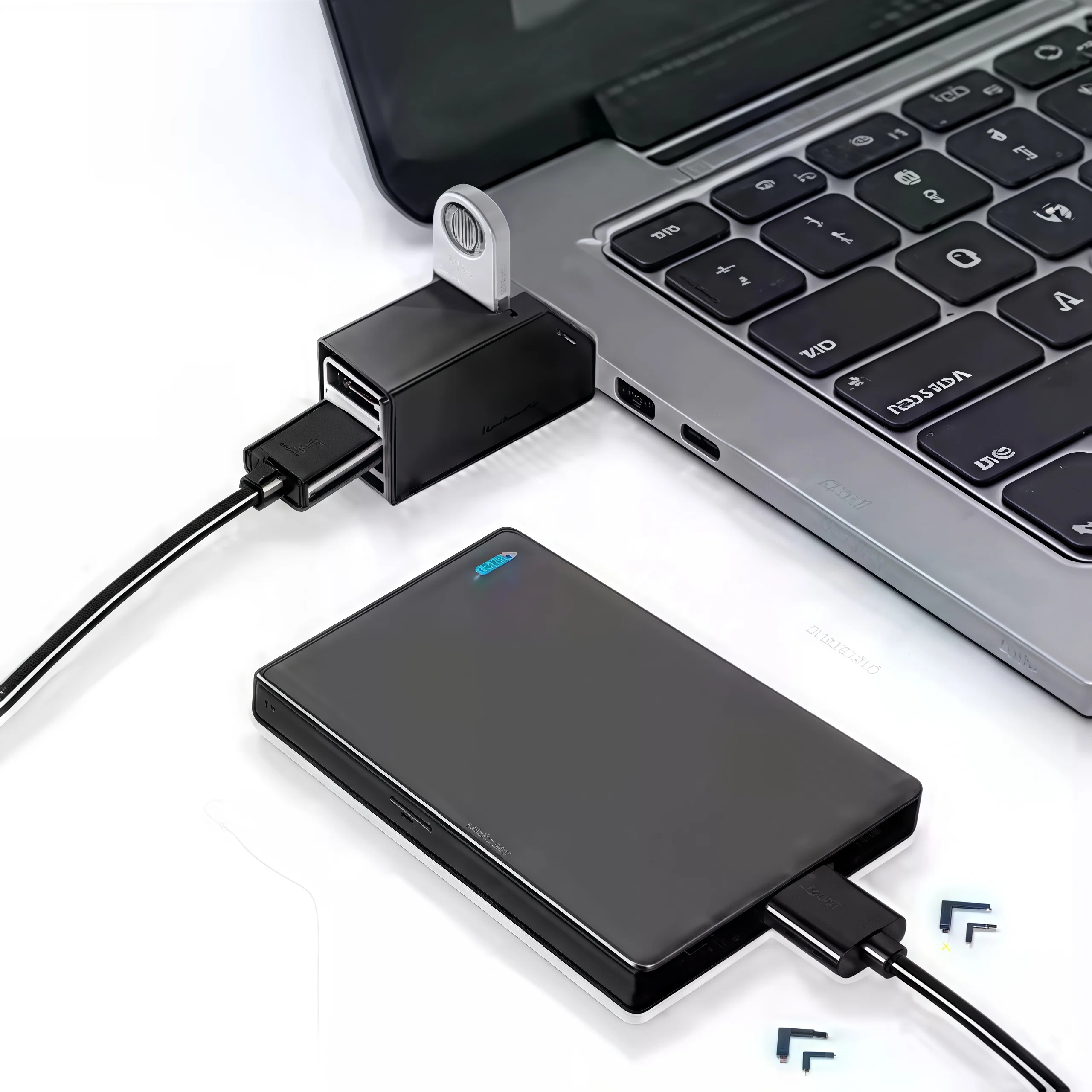4-Port USB 3.0 Hub Adapter - 5Gbps High-Speed Data Transfer, Compact Portable Design for Laptop, PC, Mac