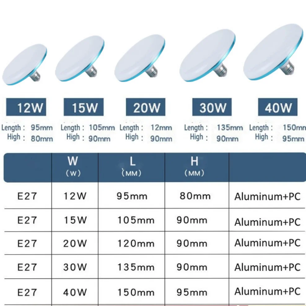 LED Bulb AC 220v E27 Base Household Energy Saving Lamp 15W Indoor Lighting Flying Saucer Light 6500k Ceiling Lamp Garage Light