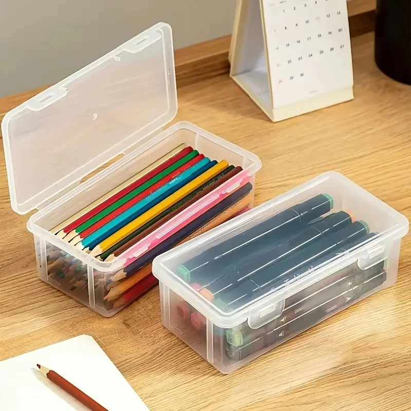 1pc Transparent Plastic Pencil Box School Office Supplies Pens Markers Erasers Tape Stickers Beads Storage Organizer Box