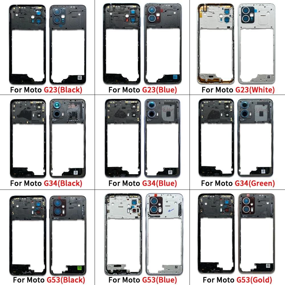 NEW Front Housing Middle Frame Bezel Chassis Shell With Side Button Key Parts For Motorola Moto G04 G23 G34 G53 G54 G62 G72 G73