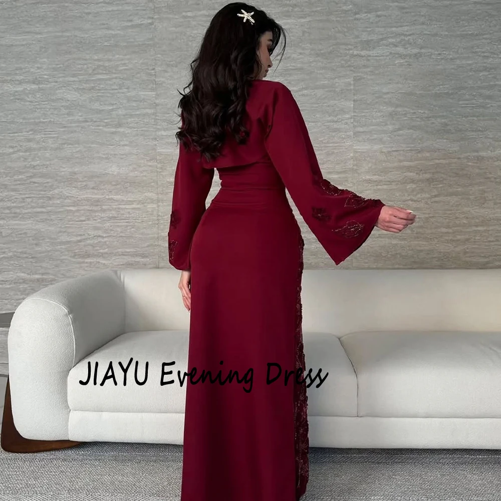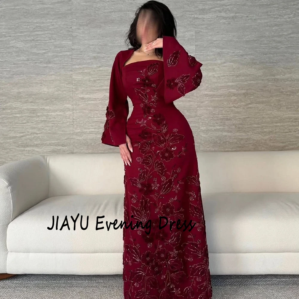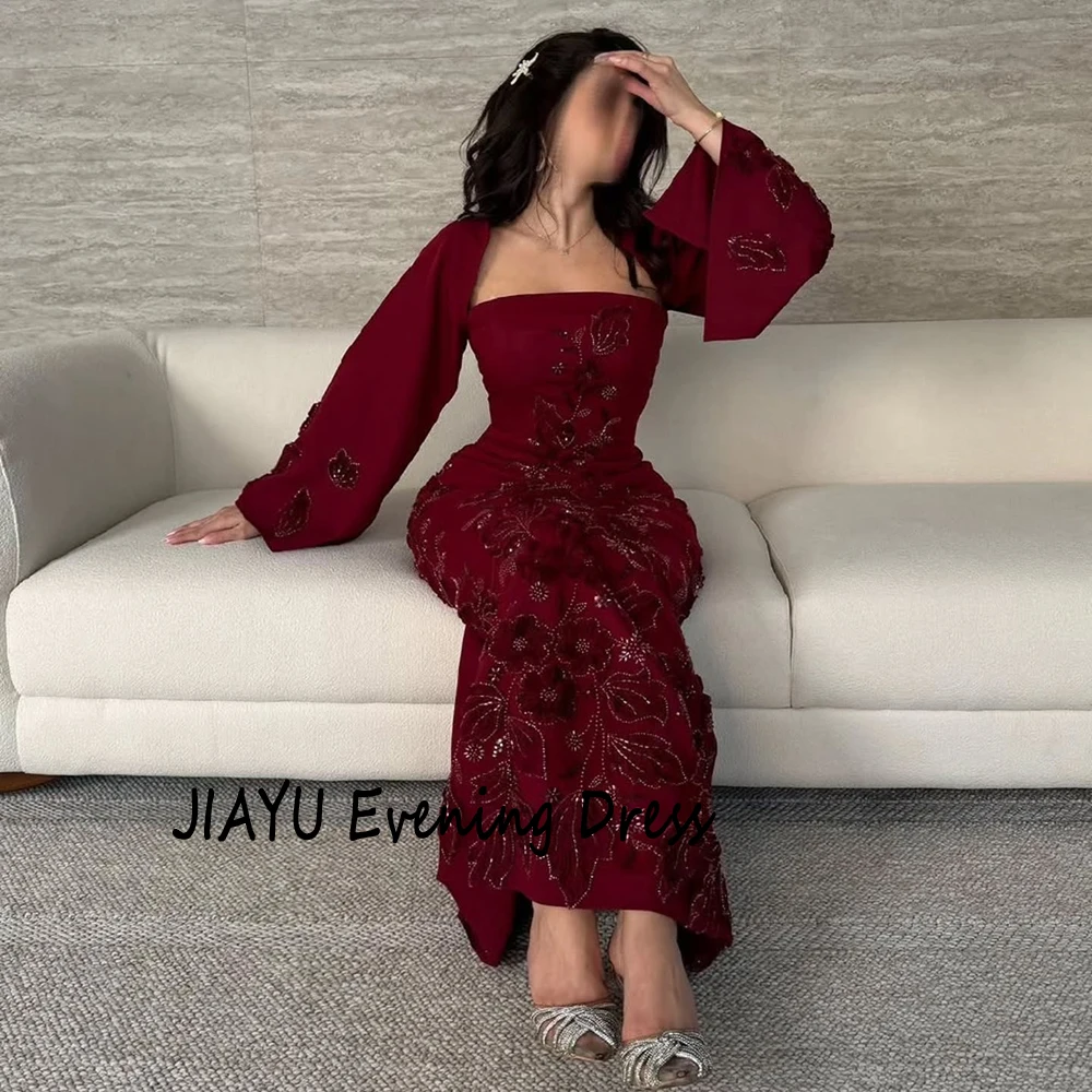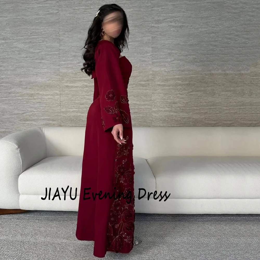 Customized Simple Burgundy Square Collar Straight Evening Dress Flower Appliques Floor Length Floor Length Party Prom Gowns