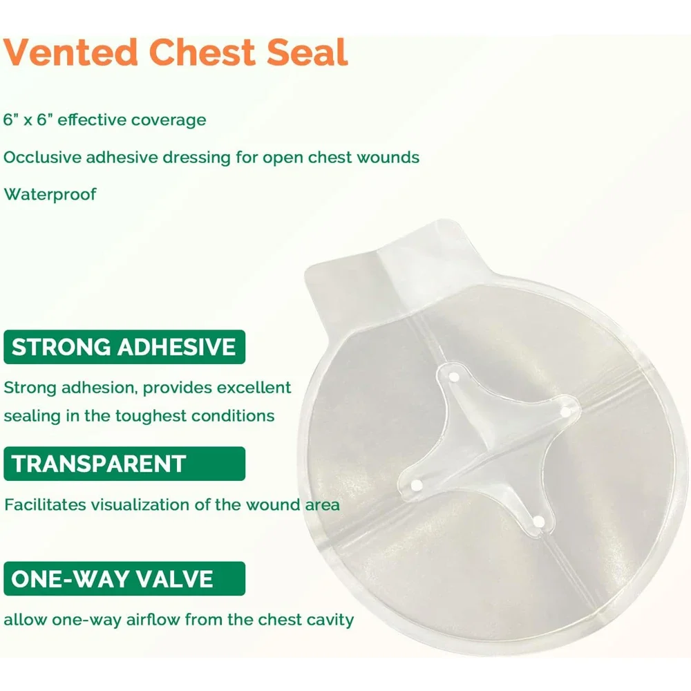 Vent Chest Seal Life-Saving Wound Care for Emergency or Tactical Situations Advanced Adhesive Sterile Transparent Lightweight