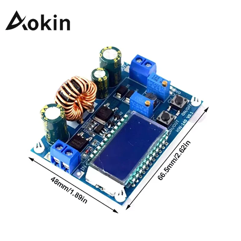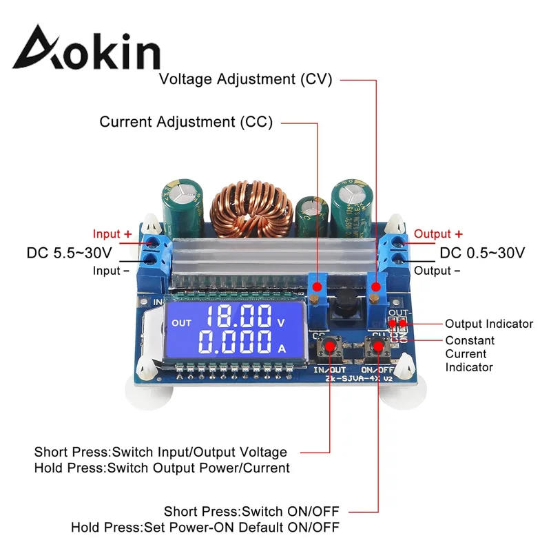 Aokin DC Buck Boost Converter Module 5.5-30V to 0.5-30V 4A 35W Adjustable Step Up Down Voltage Regulator LCD Digital Voltmeter