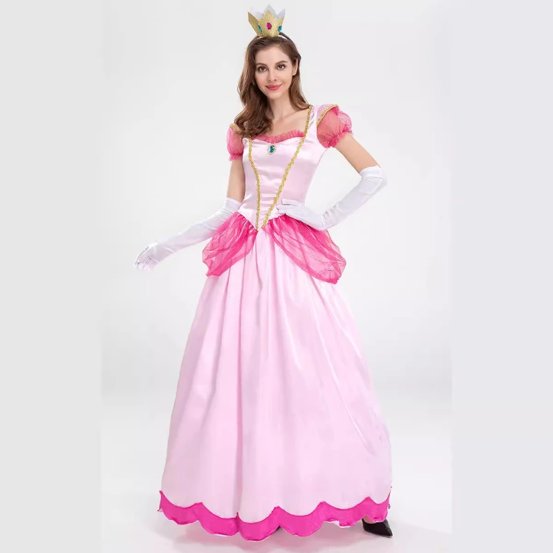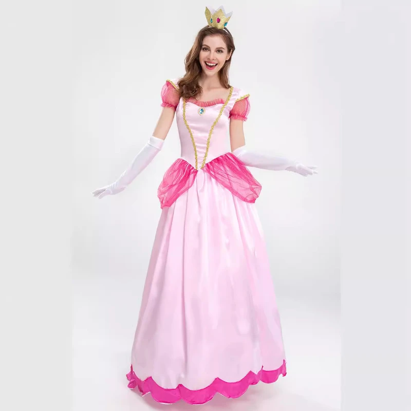 Princess Peach Costume Women Cosplay Party Anime Halloween Masquerade Dress Up Clothing Queen Skirt Pink Fancy Dress