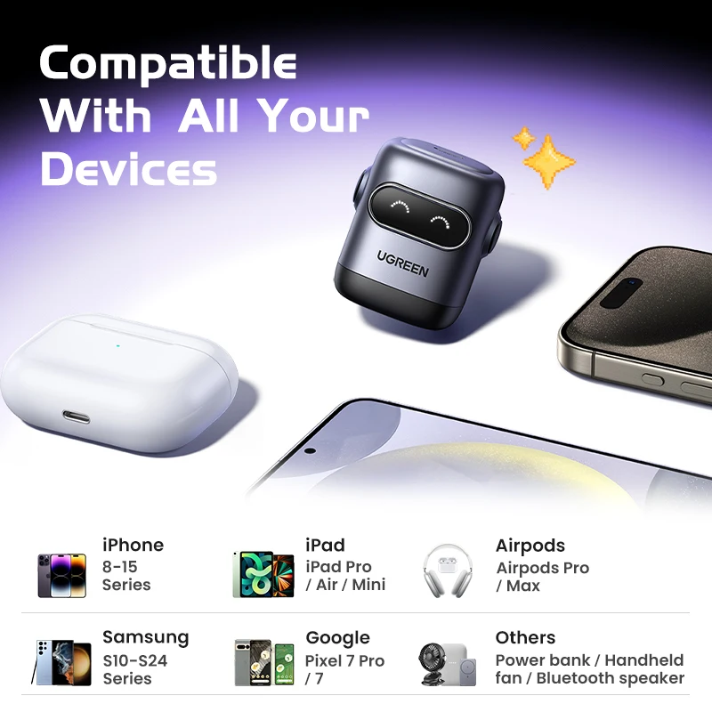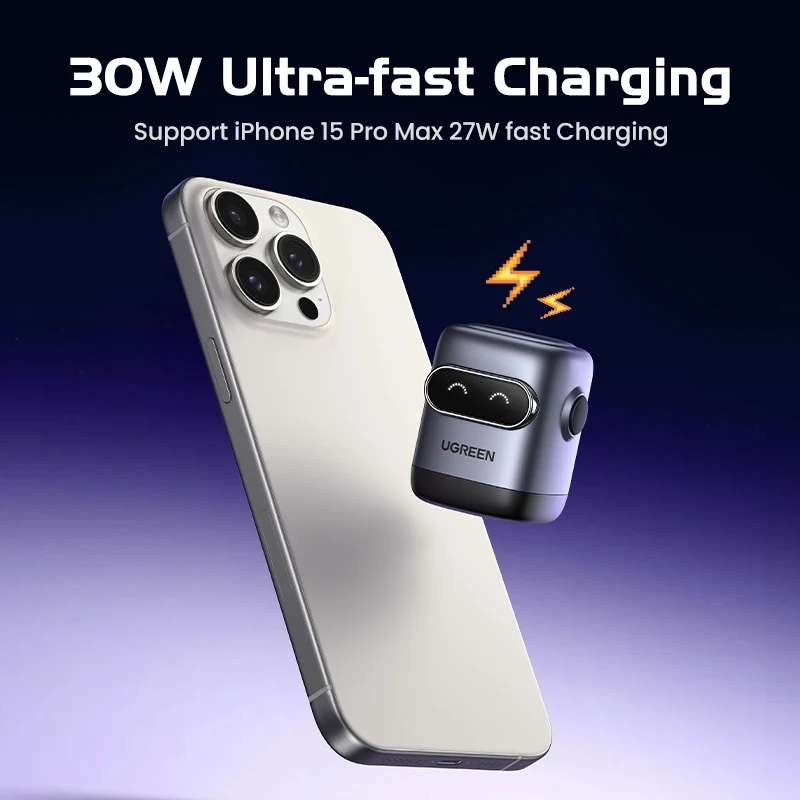 【US Plug】UGREEN Robot Design 30W GaN Charger QC4.0 3.0 PPS PD3.0 Fast Charger For iPhone 16 15 14 Pro Samsung Xiaomi iPad Air