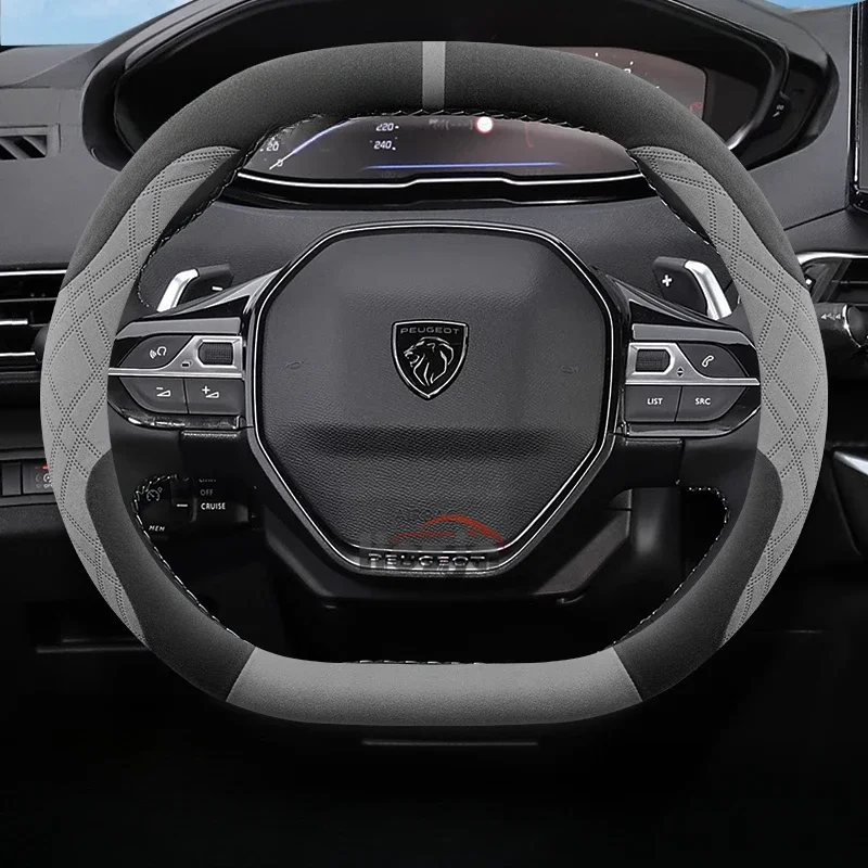 Suede Leather Car Steering Wheel Cover for Peugeot 508 308 SW E-208 208 E-408 408 GT 2021 2022 2023 2024 2025 Auto Accessories
