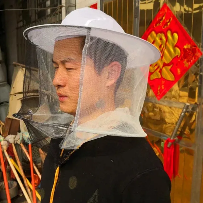Beekeeping Hat with Double Wire Veil, Professional Bee Suit Head Protection, Breathable Beekeeper Helmet for Hive Inspection