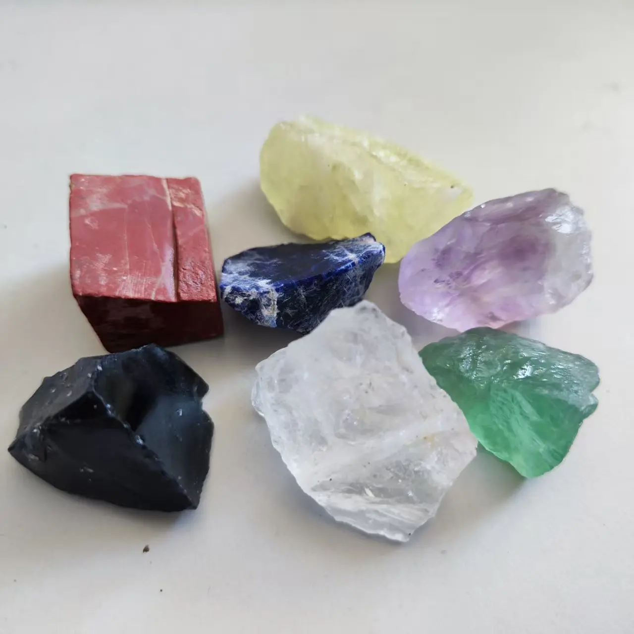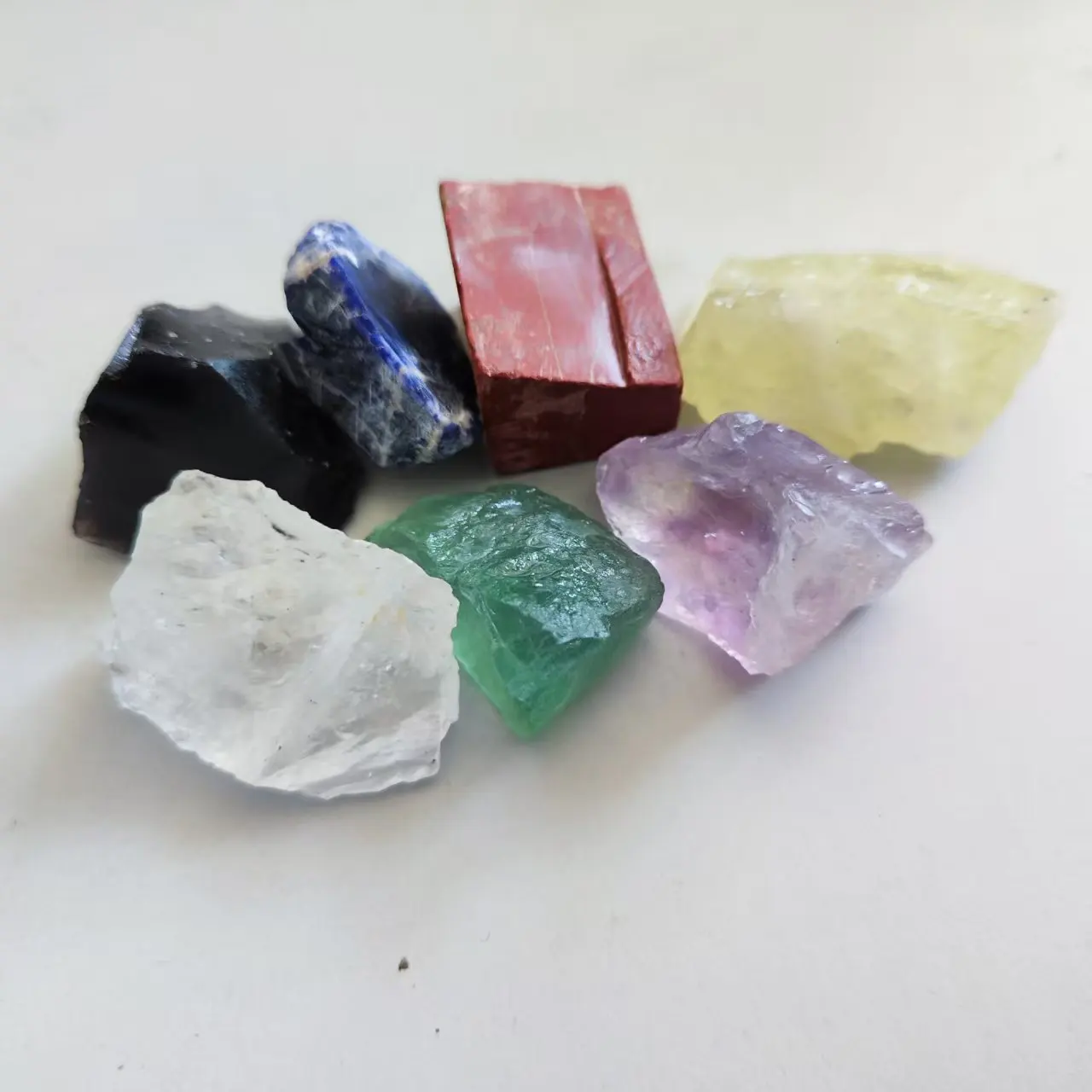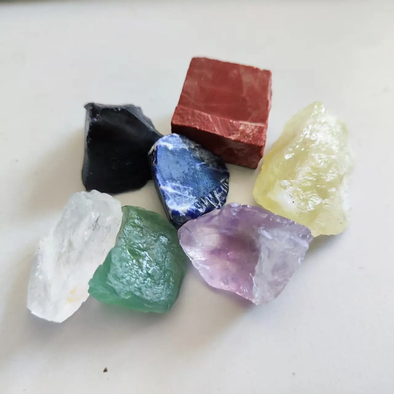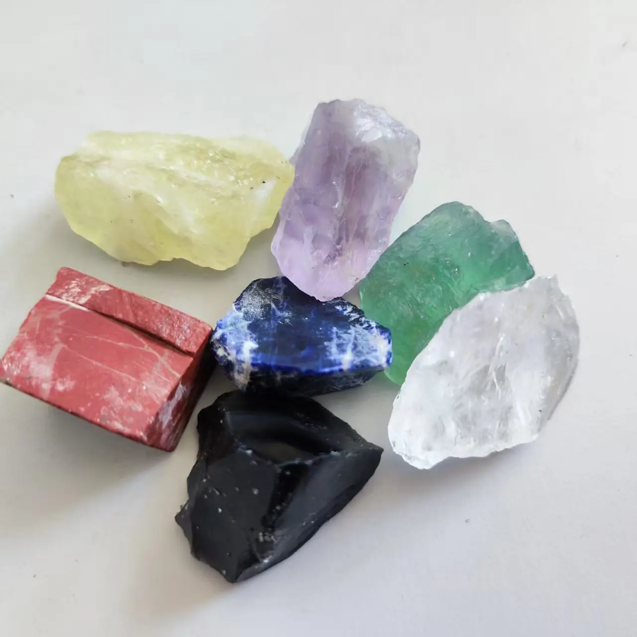 7pcs/set Crystal Rough Natural Chakra Crystal Citrine Healing Stone Amethyst Clear Quartz Red Jasper Obsidian Fluorite Sodalite
