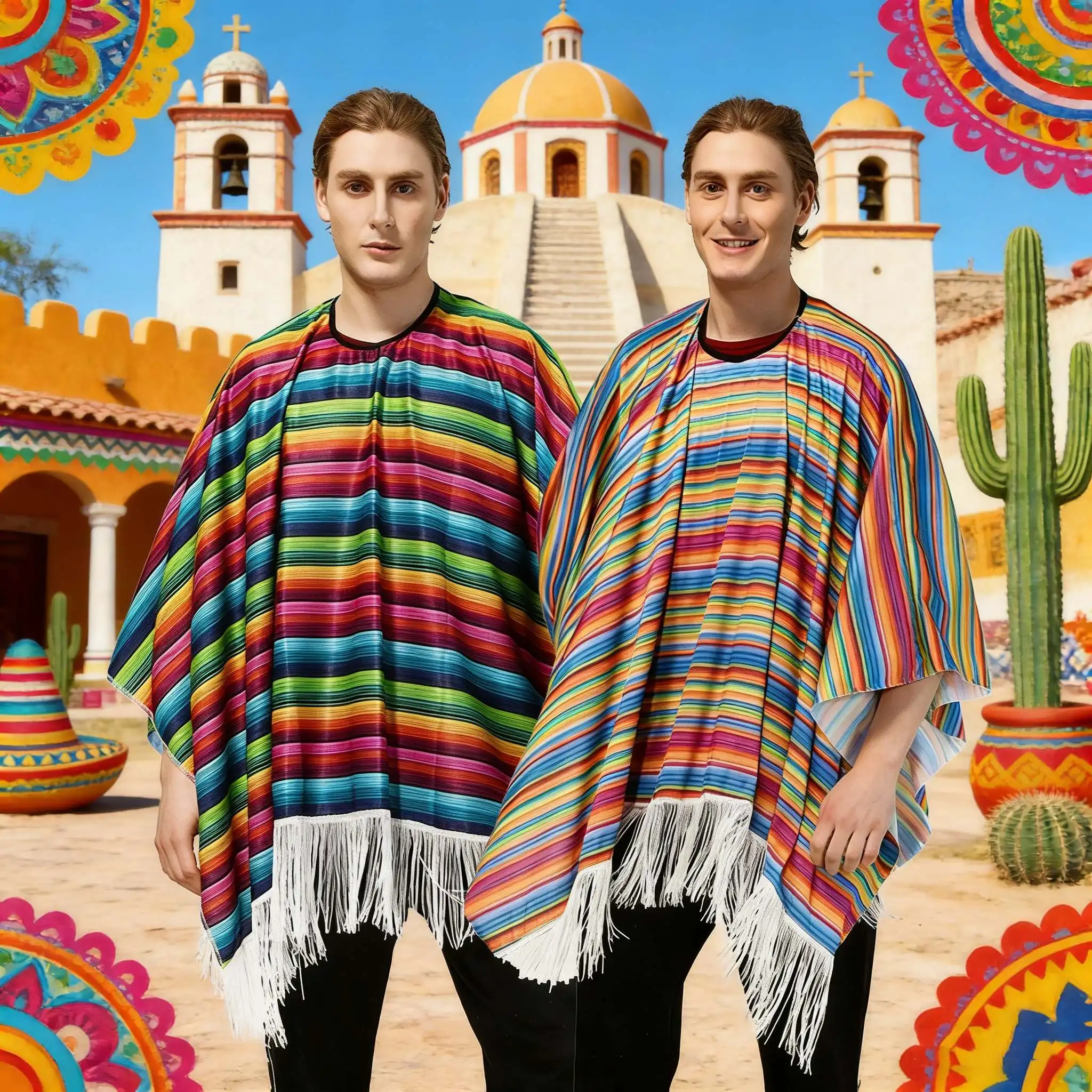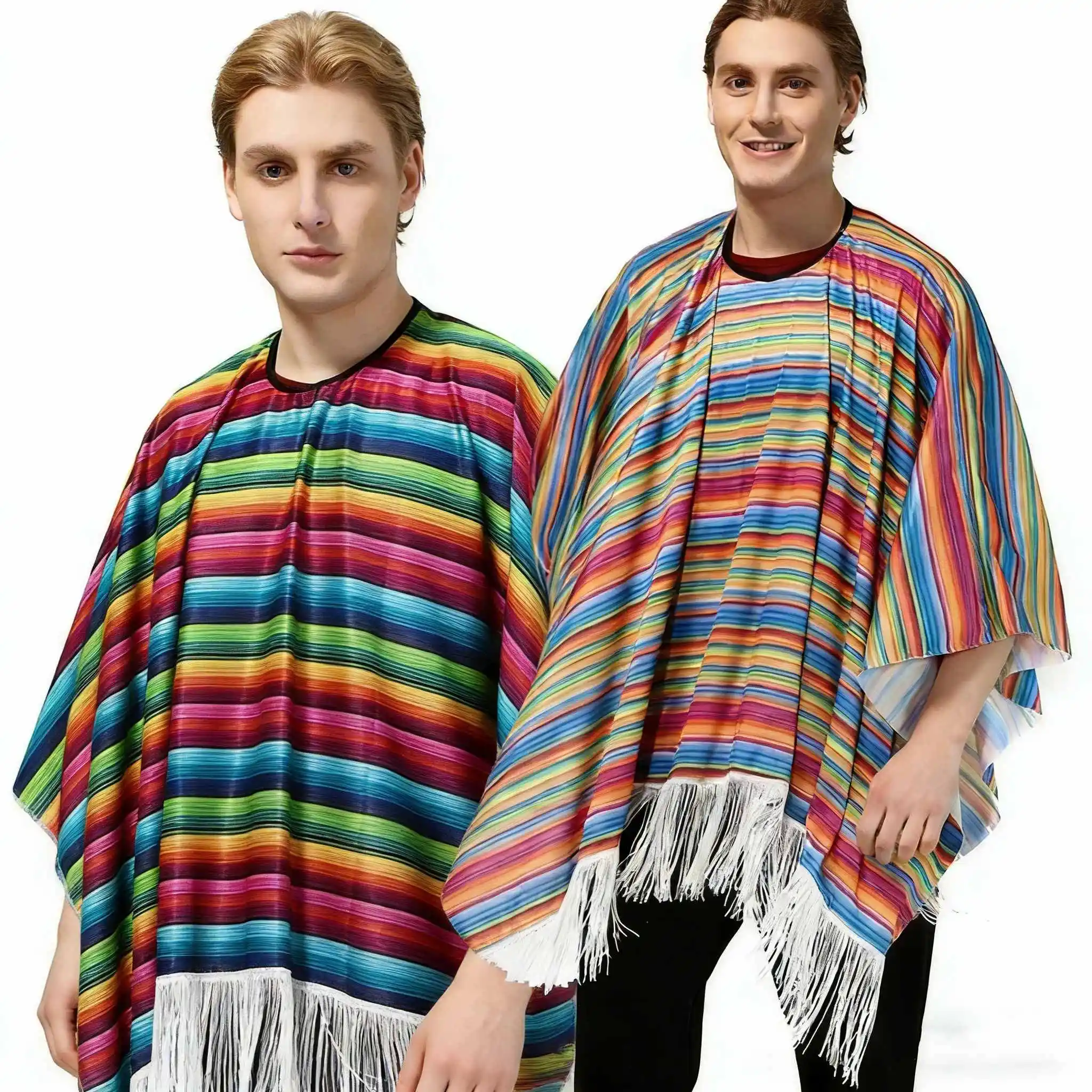 Ethnic Cloak Mexican Poncho Men Women Costume Cosplay Festival Party Mexican Colorful Striped Folk Cape Christmas GiftEthn