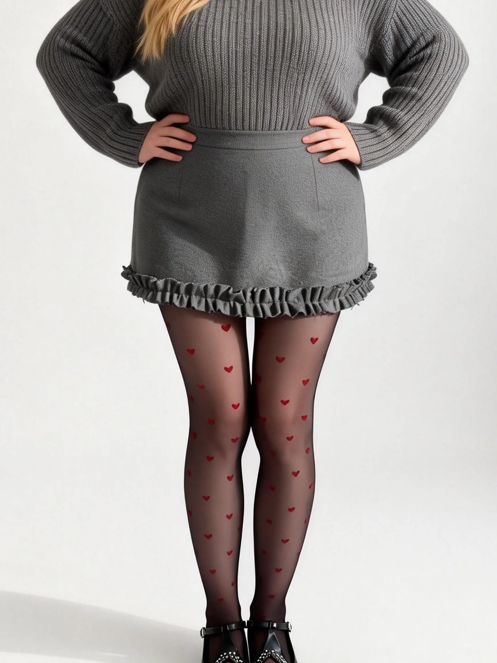 1 pc Valentine's Day Women's Ultra-Thin Red Heart Pattern Black Stockings Sheer Pantyhose for Daily Wear & Party Spring
