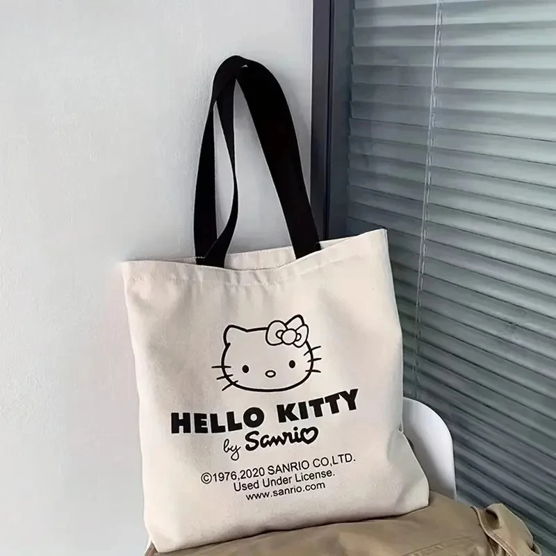 large capacity New Hello Kitty Canvas Handbag Shoulder Bag Girl Cute Sanrio Storage Bag Fashion Tote Shopping Bag Girls Gift