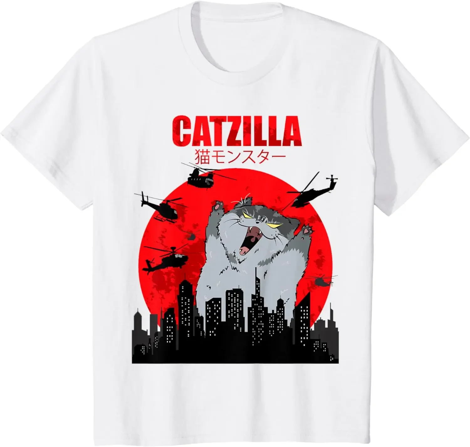 Funny Cute Art Japanese Cat Graphic for Cat Lover Catzilla T-Shirt Graphic T Shirts Women's Clothing Fashion