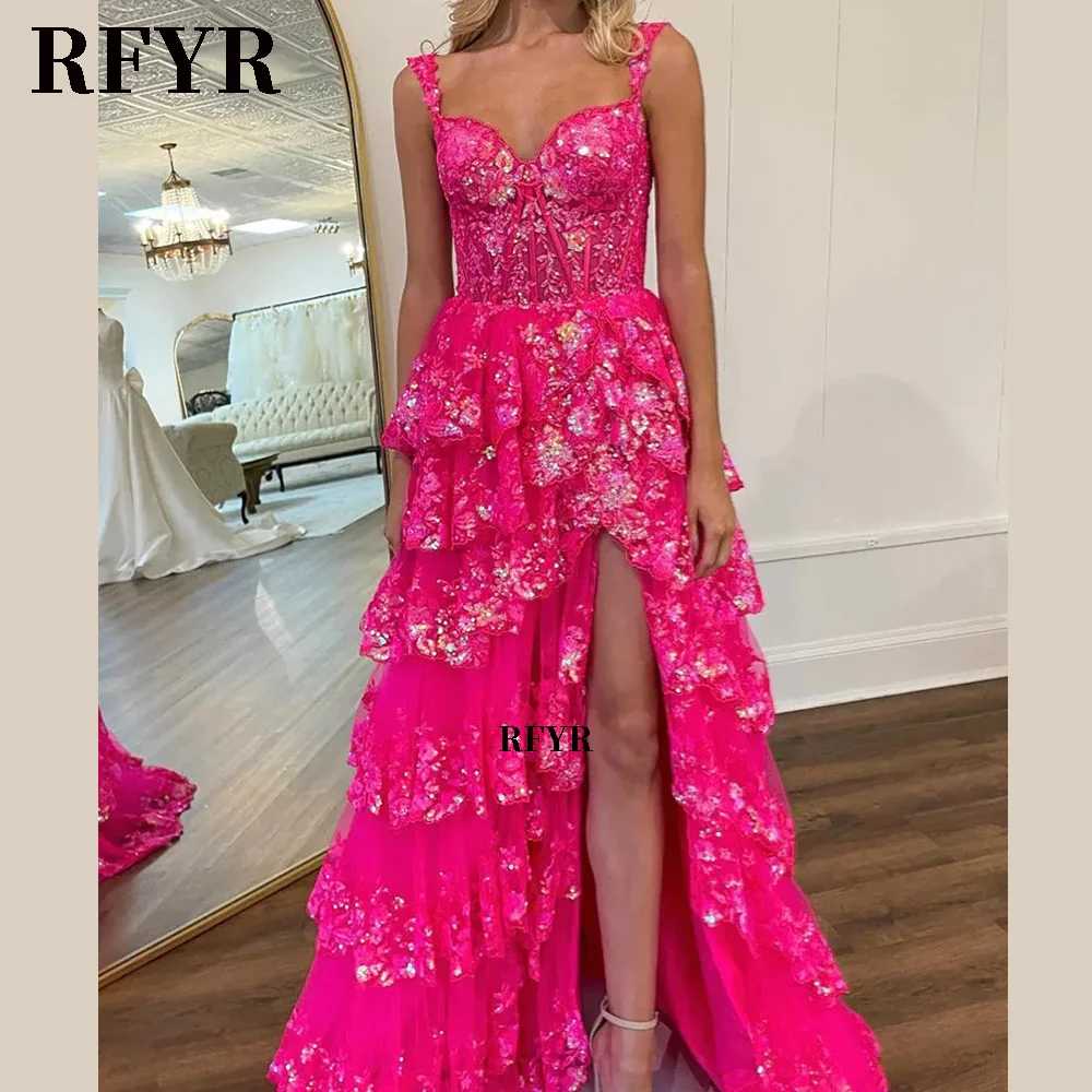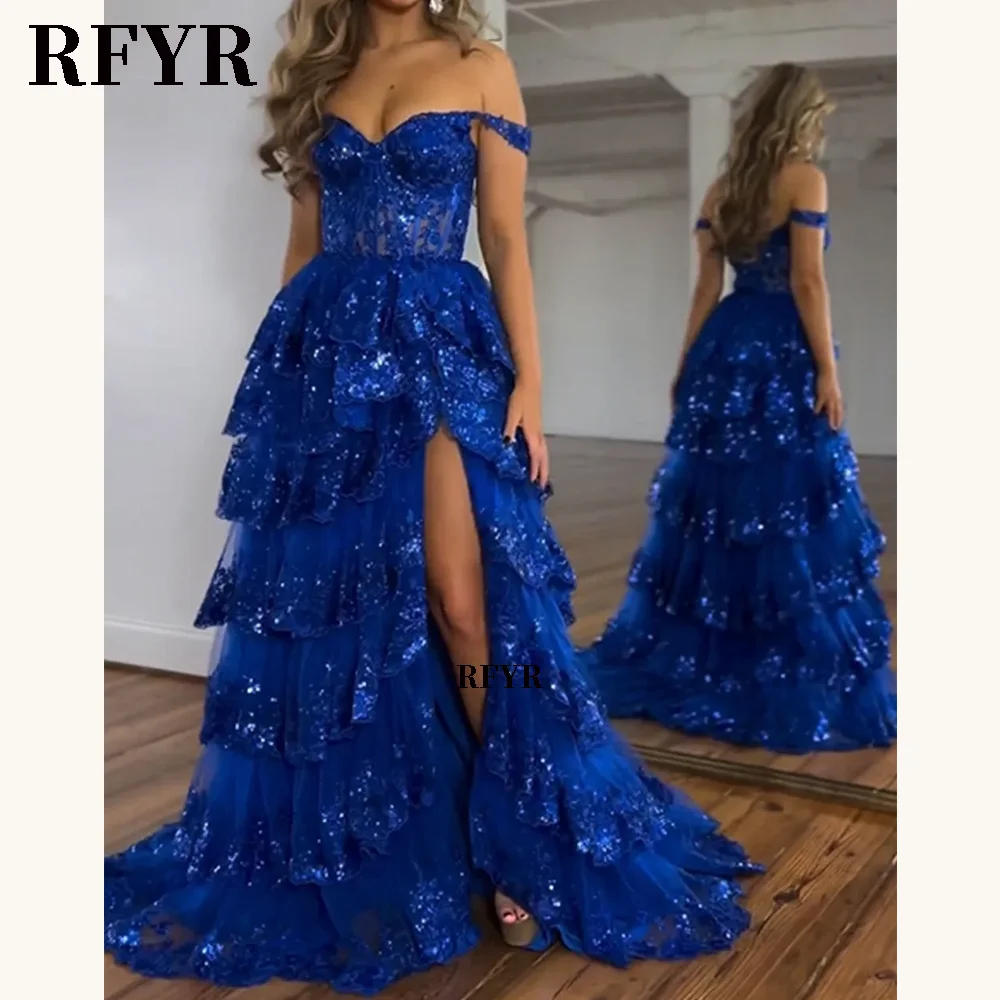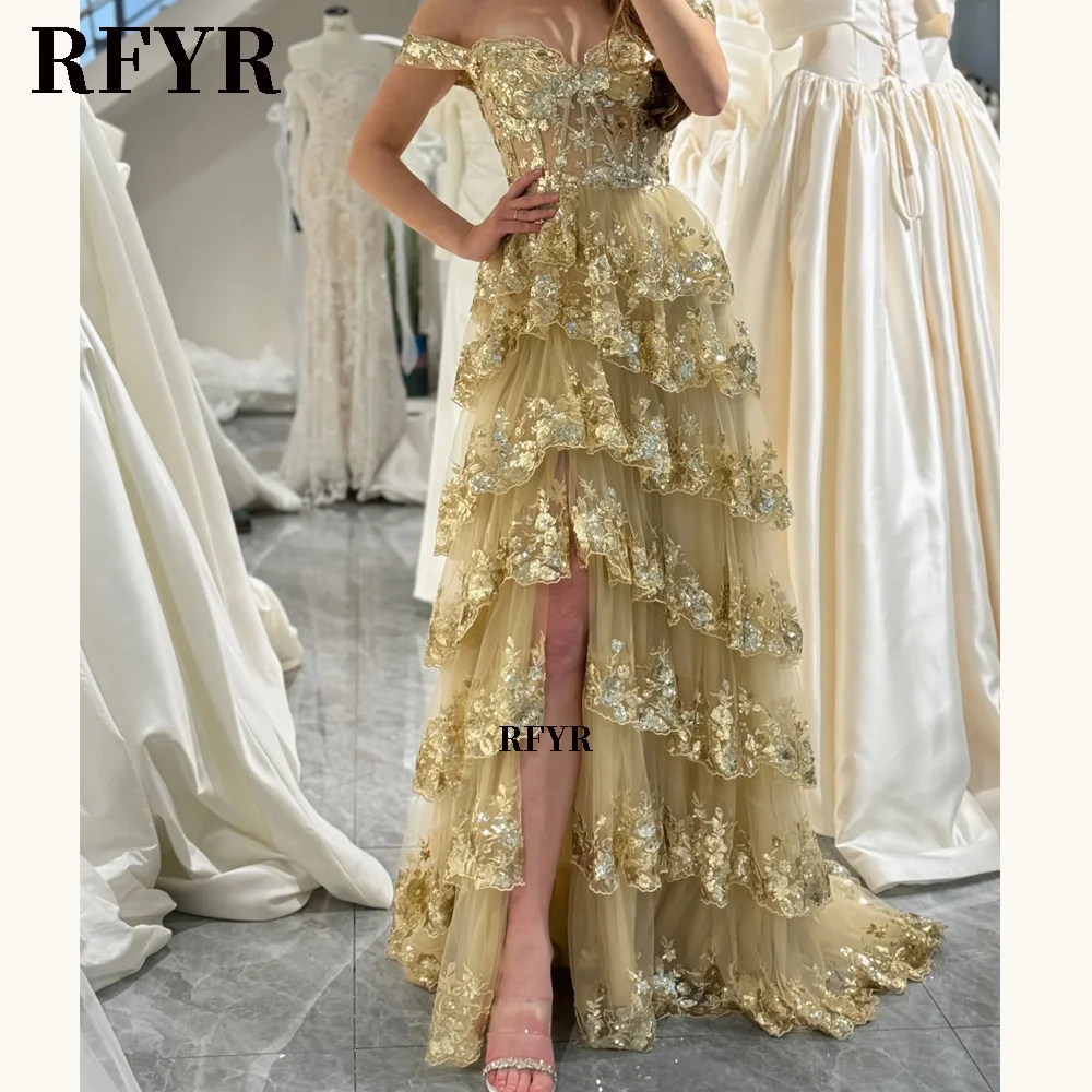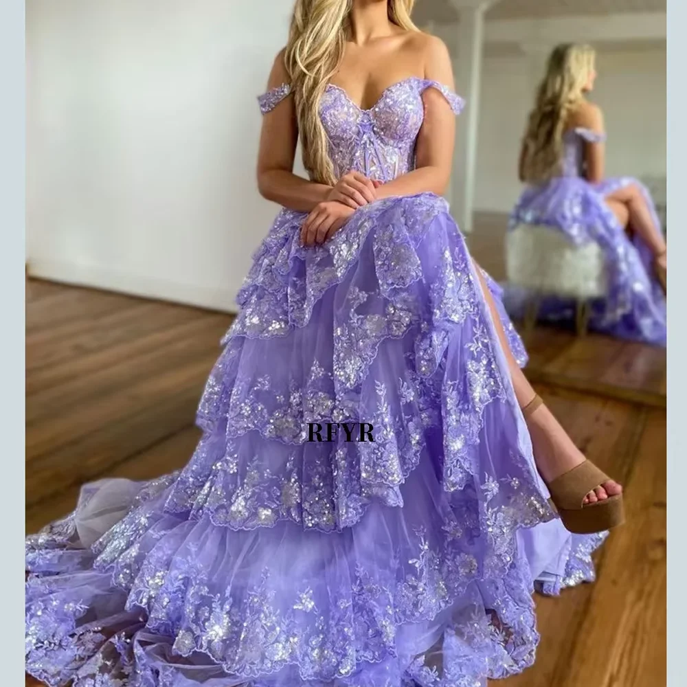 RFYR Puffy Evening Dress Off Shoulder Party Dresses Sweetheart Layered Prom Dress Appliques Evening Dress for Women Customized