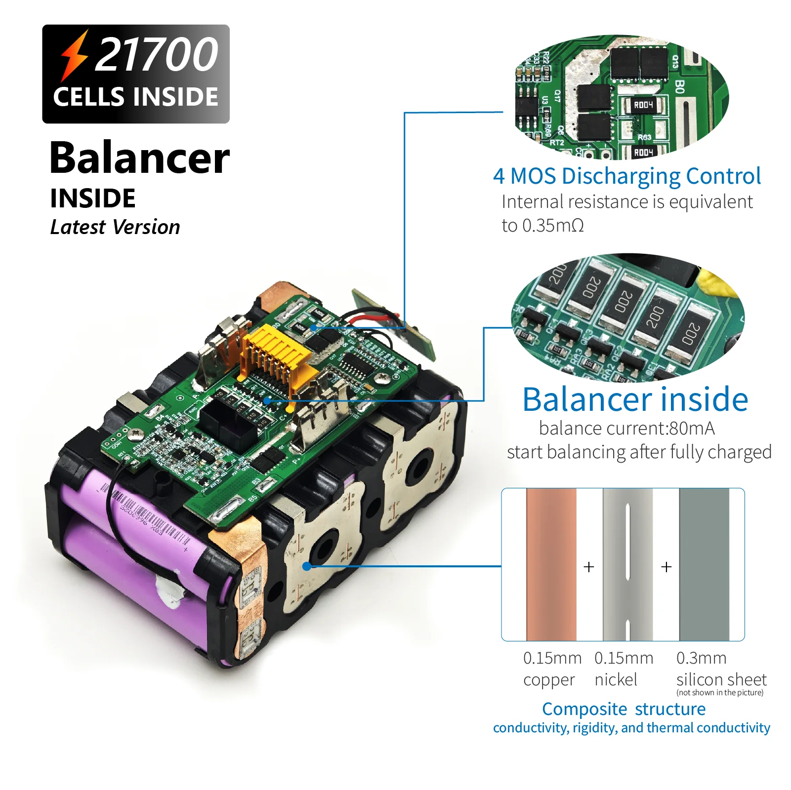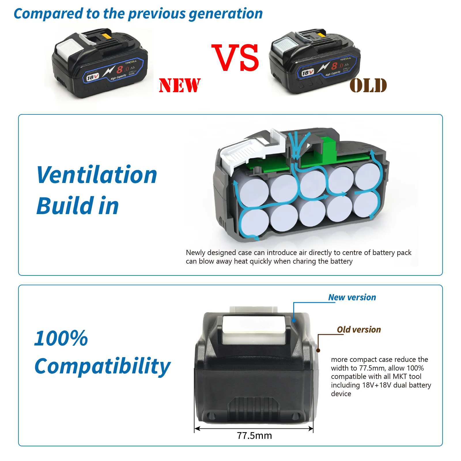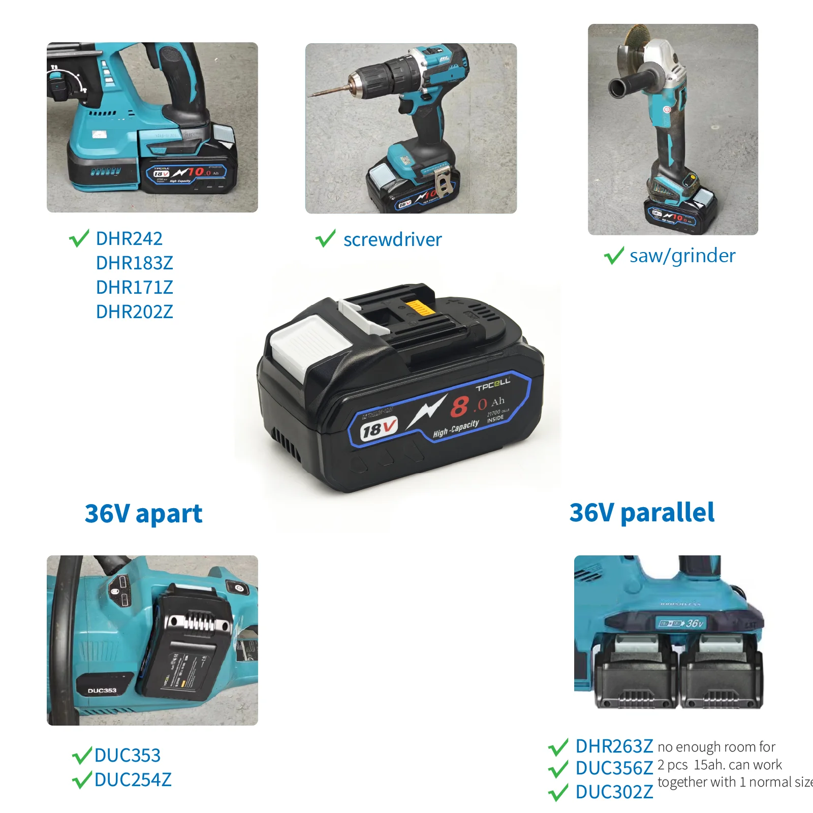TPCELL 8/10Ah 18V 21700 cells battery for MKT 18V power tools