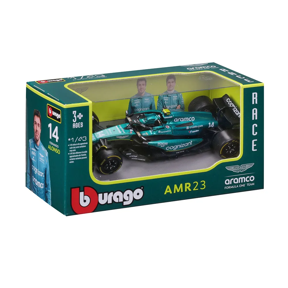 Bburago 1:43 2023 F1 Aston Martin 14# Fernando Alonso 18# Lance Strulovitch Alloy Luxury Die Casting Car Model Toy Series