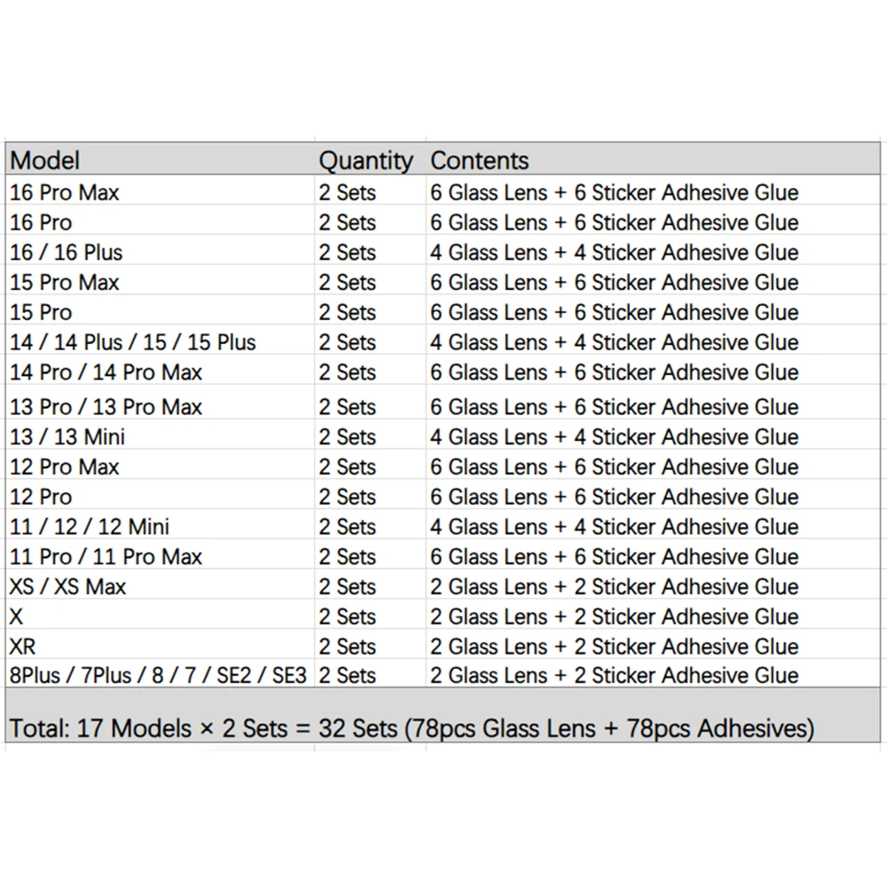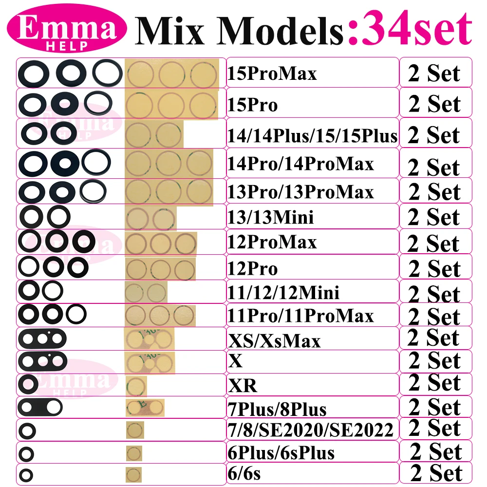 34sets Back Camera Lens Glass Replacement for iPhone 16 13 Mini 14 15 Plus 12 Pro Max Rear Camera Lens