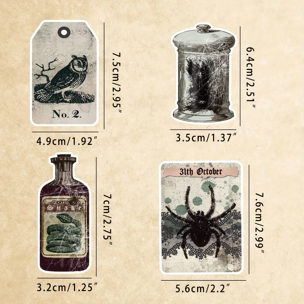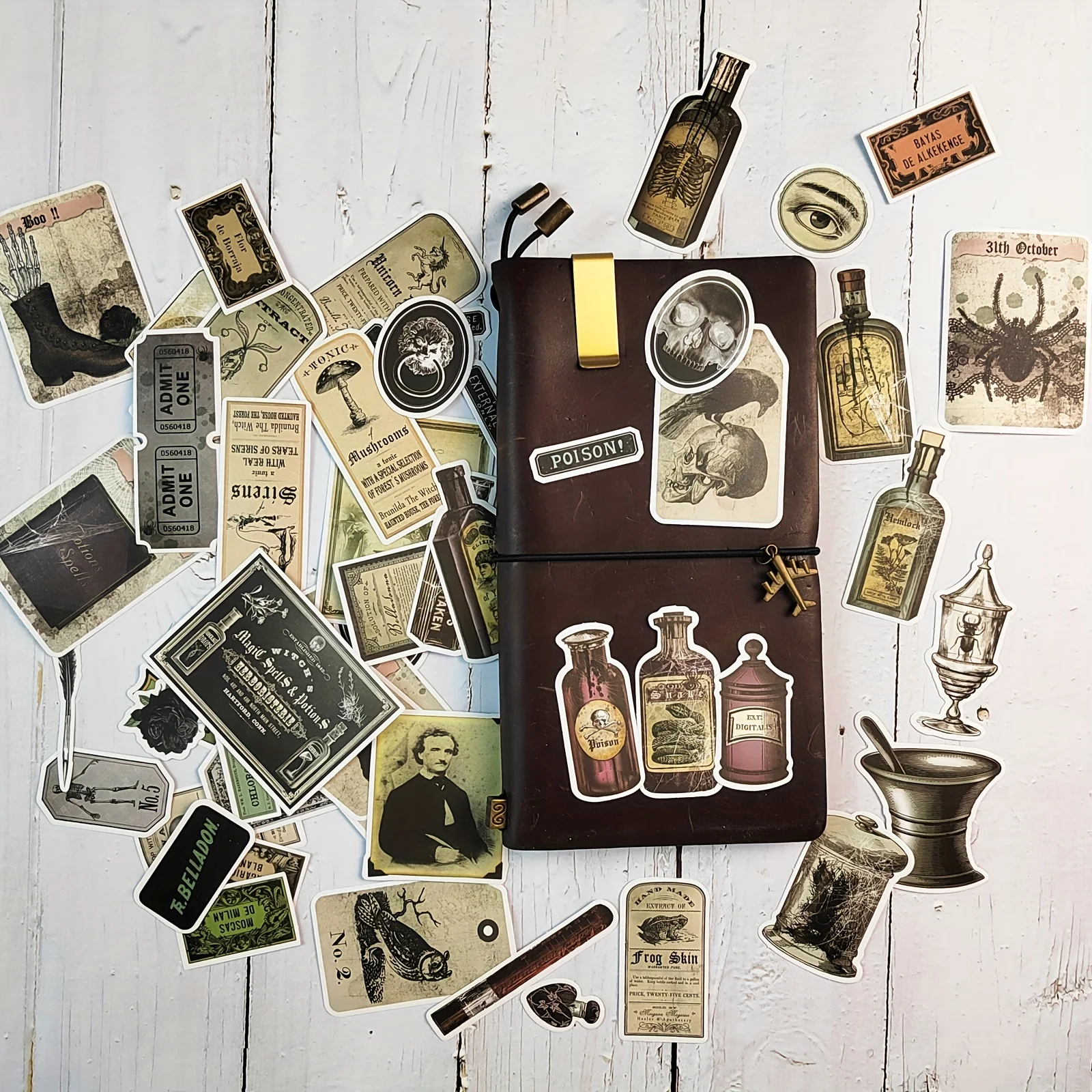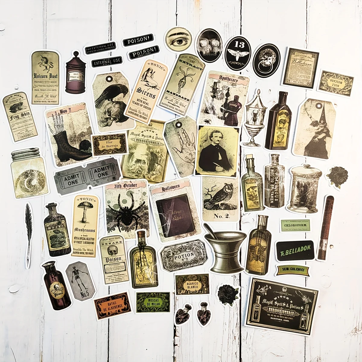 50PCS/Pack Vintage Potion Bottle Labels Stickers Retro Horror Gothic Stickers For Suitcase Scrapbooking Laptop Decorative