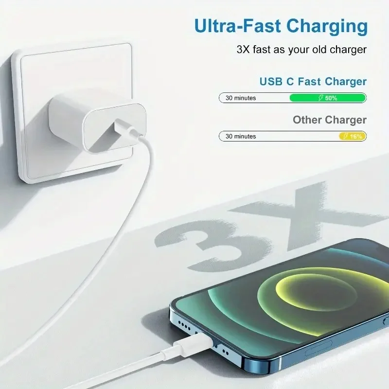 1-2pcs PD 20W USB C Fast Charge US Plug Wall Charger Adapter For Phone 16 15 14 13 12 Pro Max Plus Xiaomi Samsung Phone Charger
