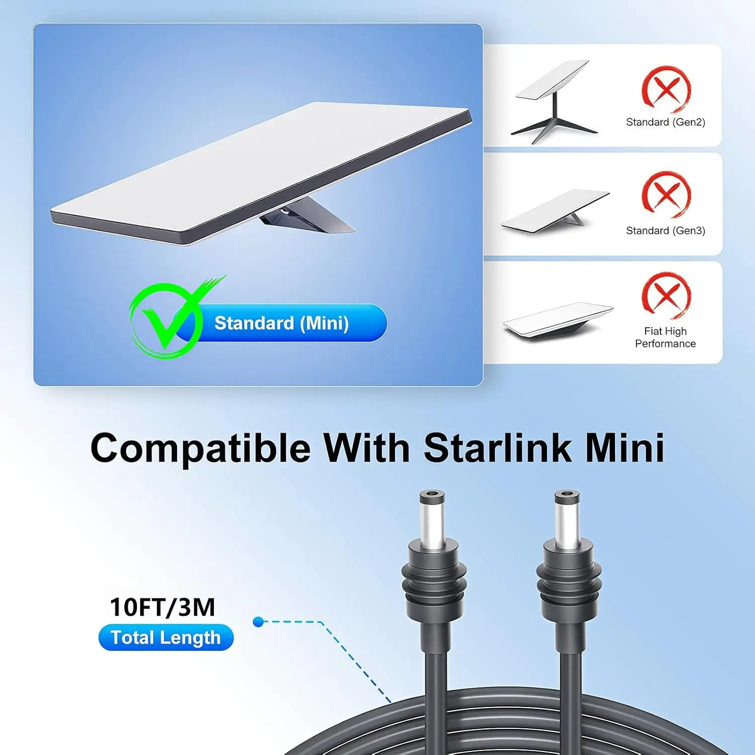 3.3/16.4/32.8FT Starlink Mini DC Power Cable, Starlink Mini Replacement Cable, DC Power Cable for Starlink Power Supply, Gray