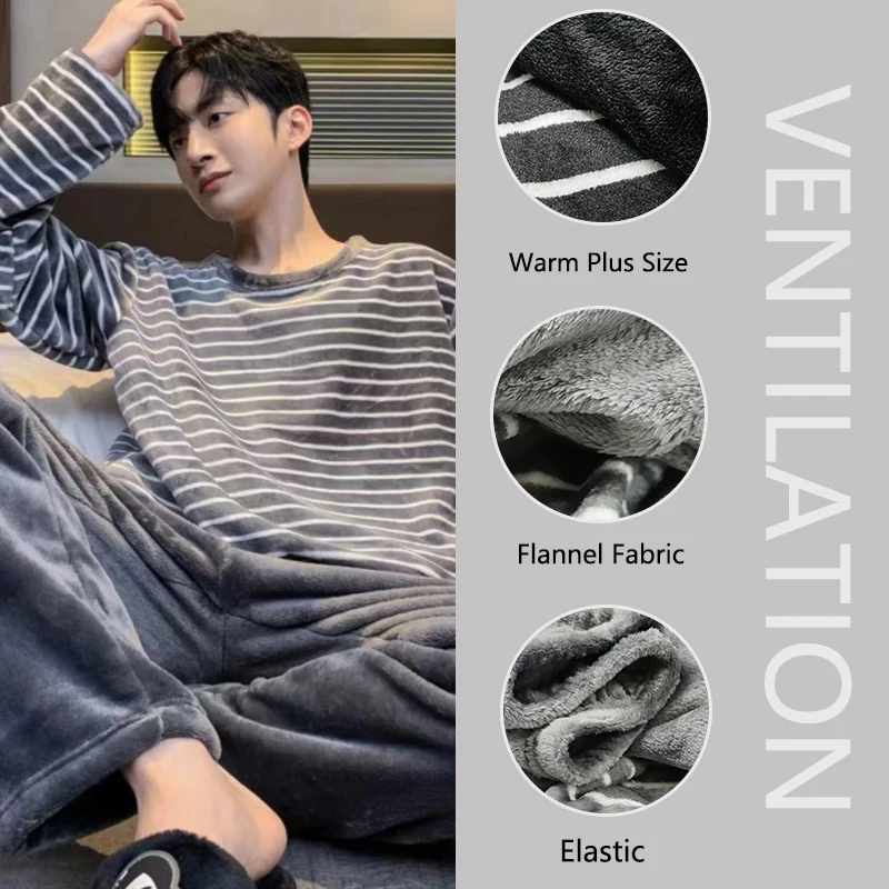 ALI shop - rezultati pretrage ... ... Winter Flannel Pajamas Men Korean Version of the Striped Padded Long-Sleeved Cartoon Nightwear Homewear Set Sleepwear Loungewear ::: 2021 ::: :::