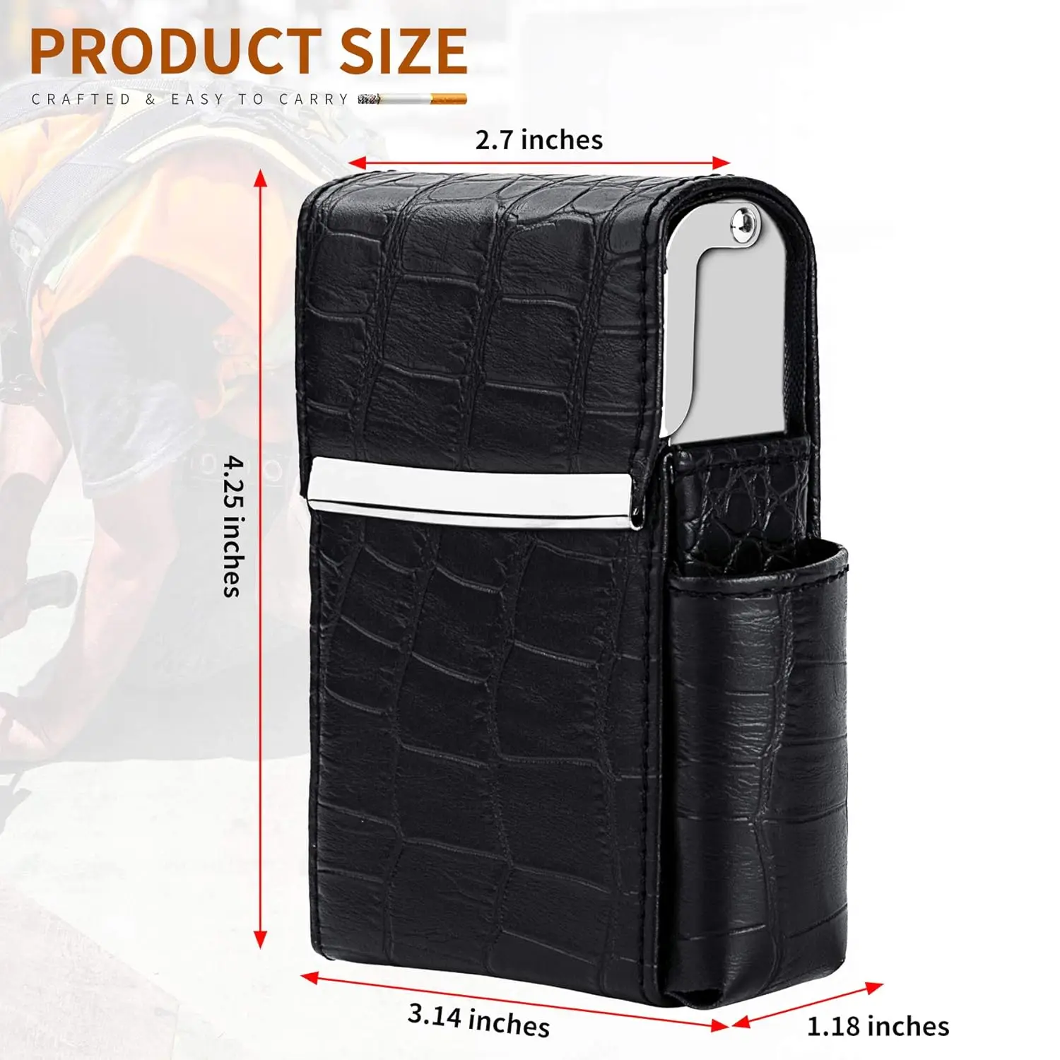 PU Leather Cigar Storage Box King Regular Slim Size Sliding Cigarette Box Case with Lighter Holder and Belt Loop for Men Women