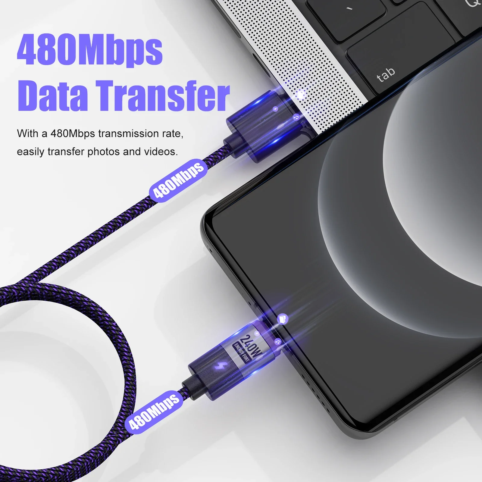 PD240W Magnetic Fast Charging Cord PD3.1 USB C to USB C Fast Charger Cable Type C Charging Cable for XIAOMI iPhone Samsung iPad