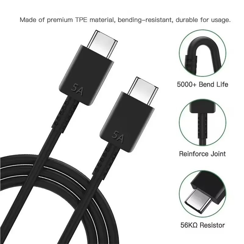 45W 5A Super Fast Charger For Samsung S25 S24 S23 S22 Plus Note 20 Ultra A15 A25 A35 A53 A54 A55 USB-C to Type-C Charging Cable