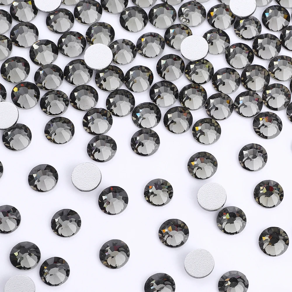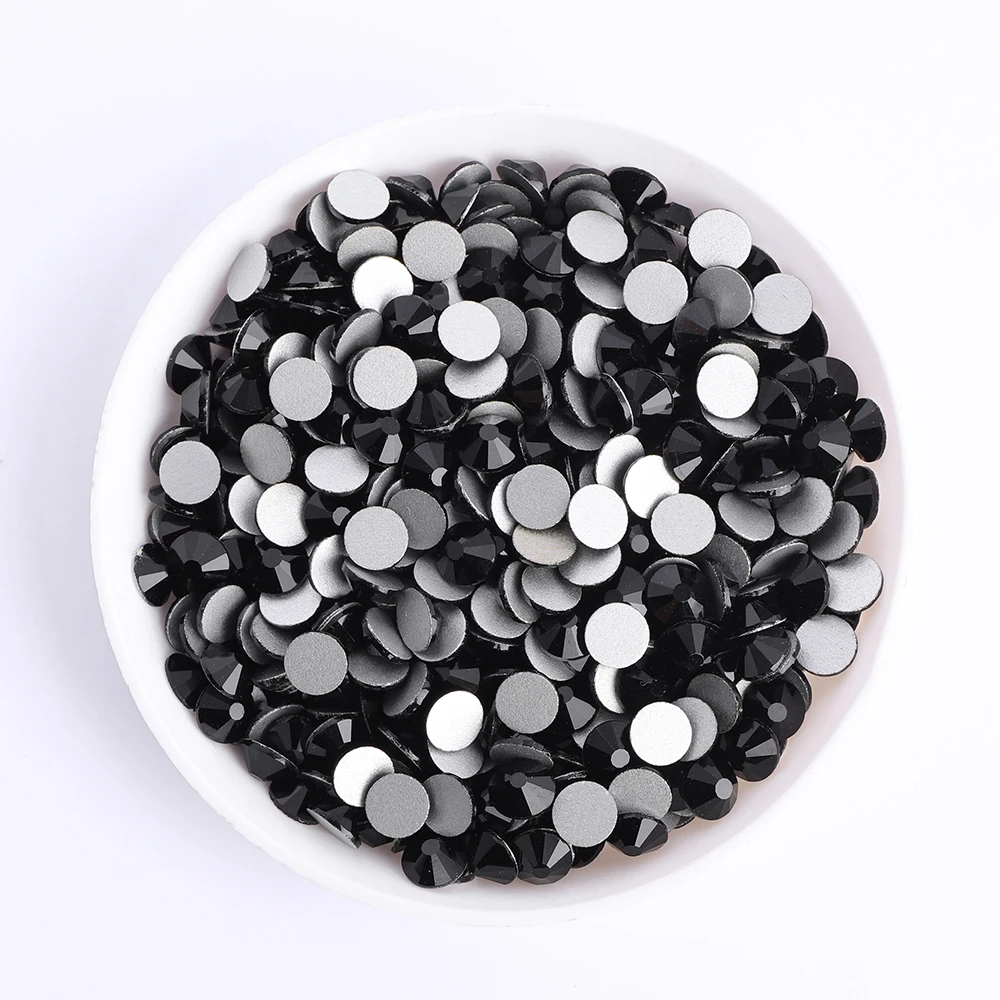 Black Series Glass Flatbase Rhinestones For Needlework SS3-SS60 Non Hotfi Boutique Crystal For Nail Art Crafts DIY Deco Parts