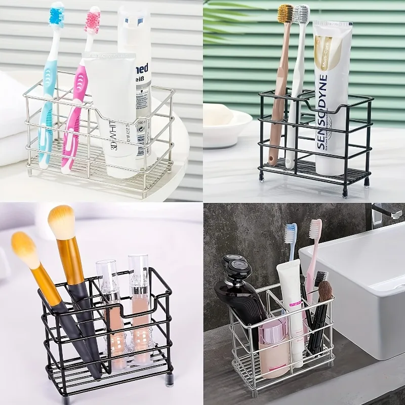 Stainless Steel Bathroom Toothbrush Holder Toothpaste Holder Stand Bathroom Accessories Organizer