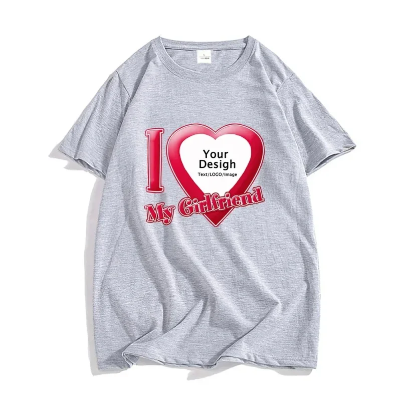 DIY I Love My Boyfriend Girlfriend T-shirt For Mens Women Custom Photo Short Sleeve Tee Shirt Tops Customize Tshirt